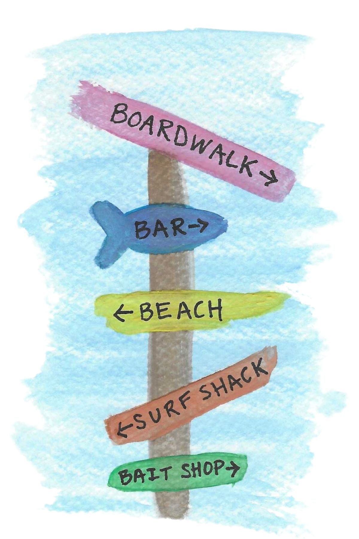 Beach Sign Watercolor Painting | Coastal Digital Art Print | Instant Digital Download