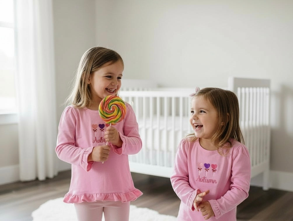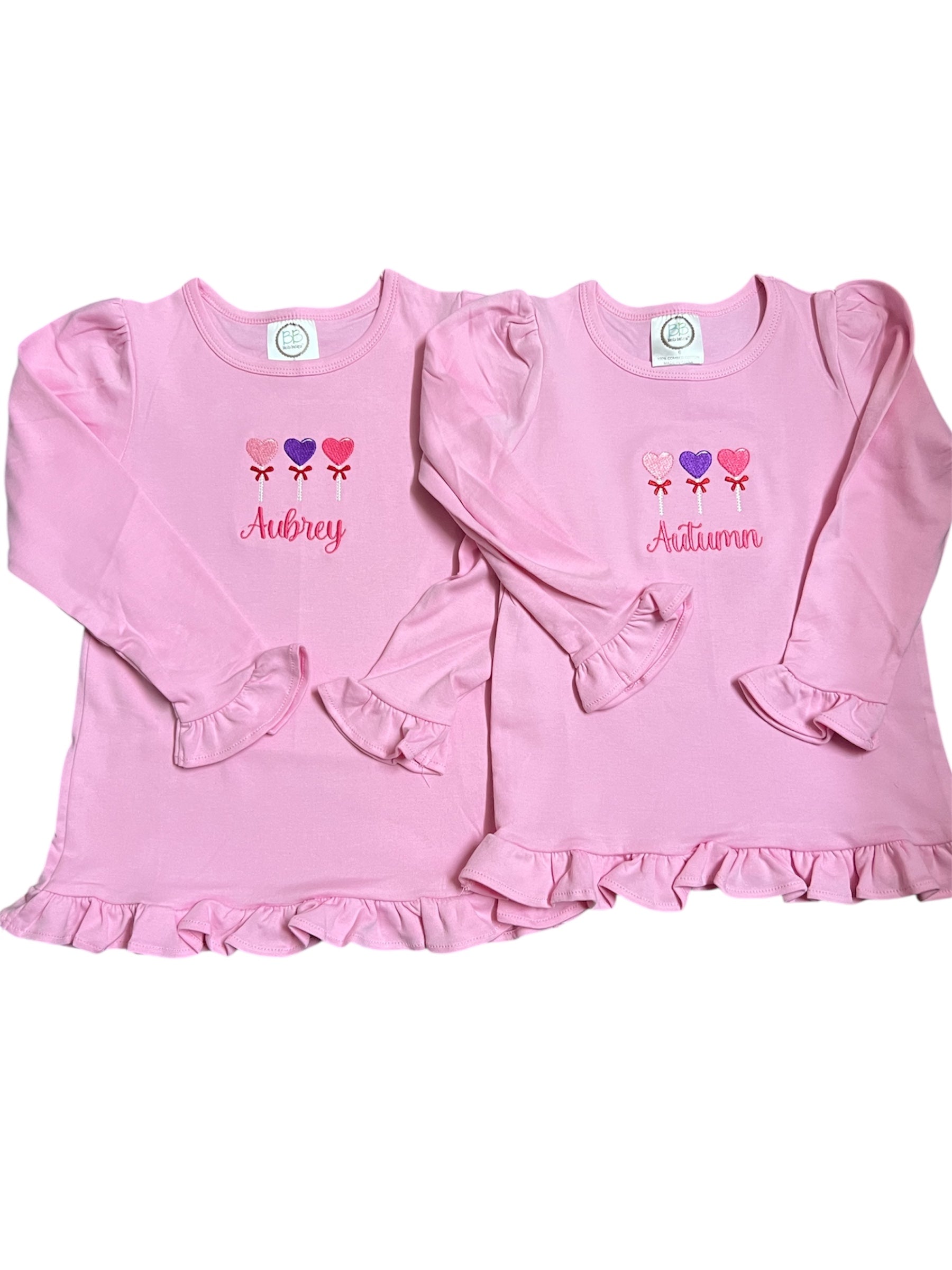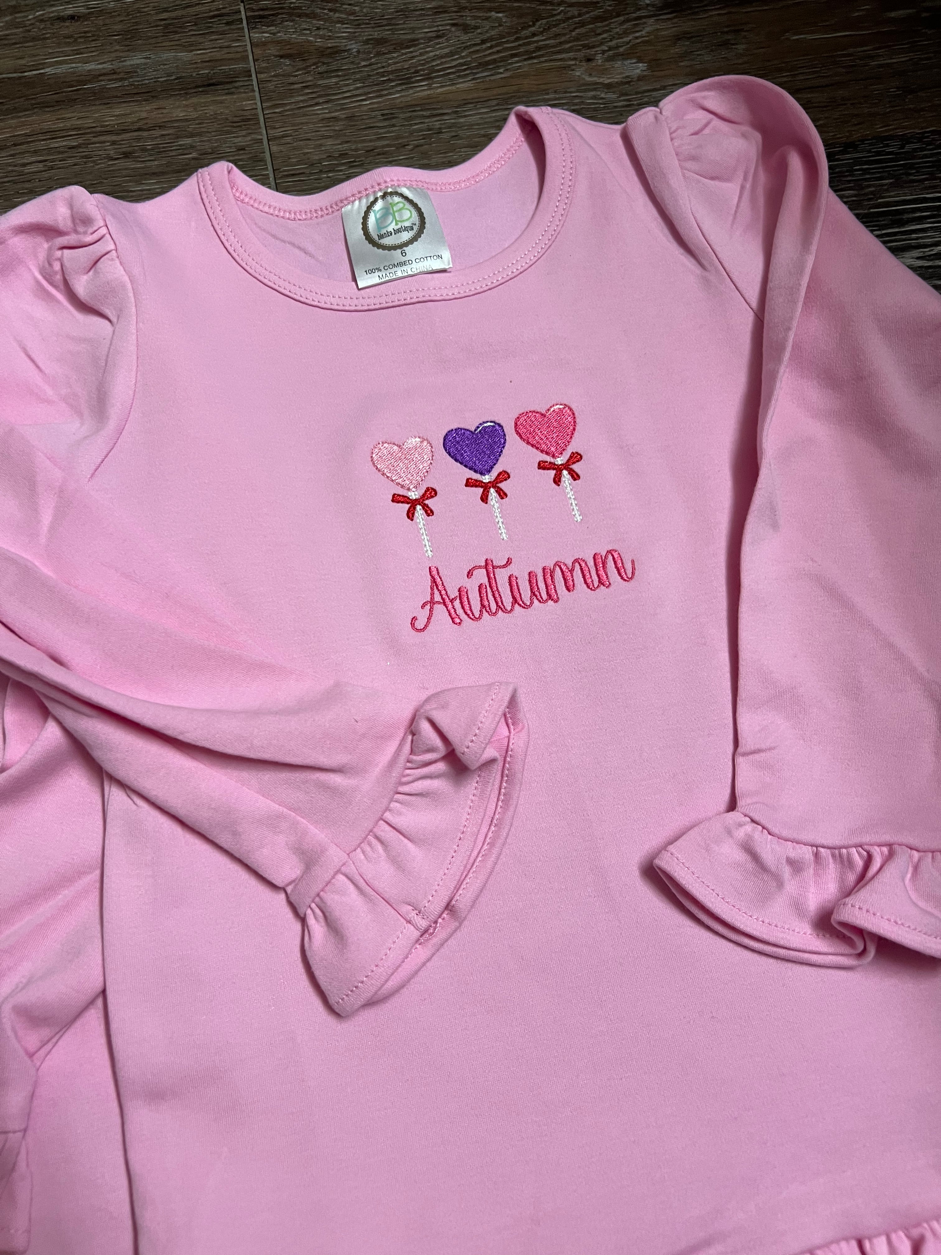 Personalized Embroidered Valentine Shirt for Girls | Ruffled Long Sleeve Top