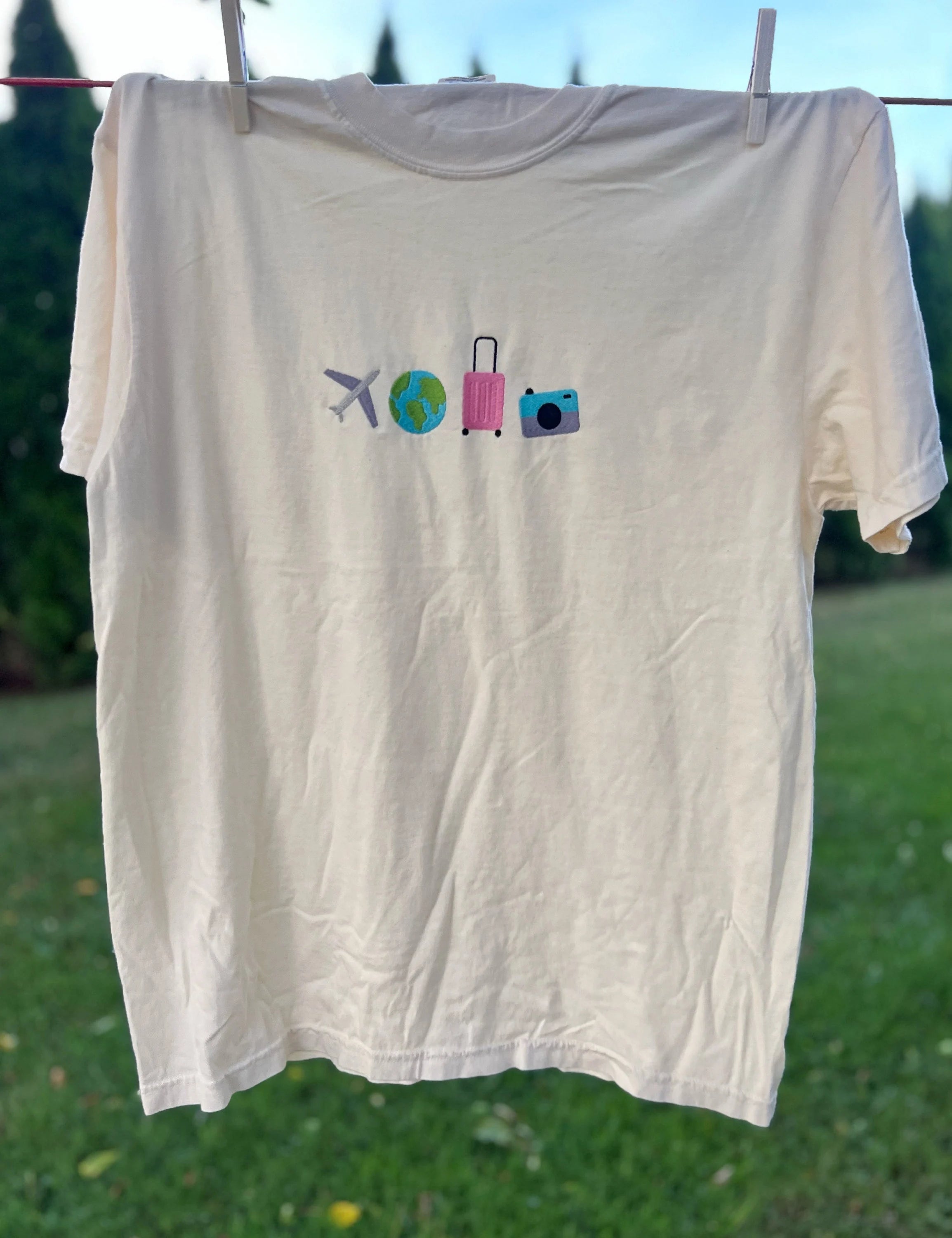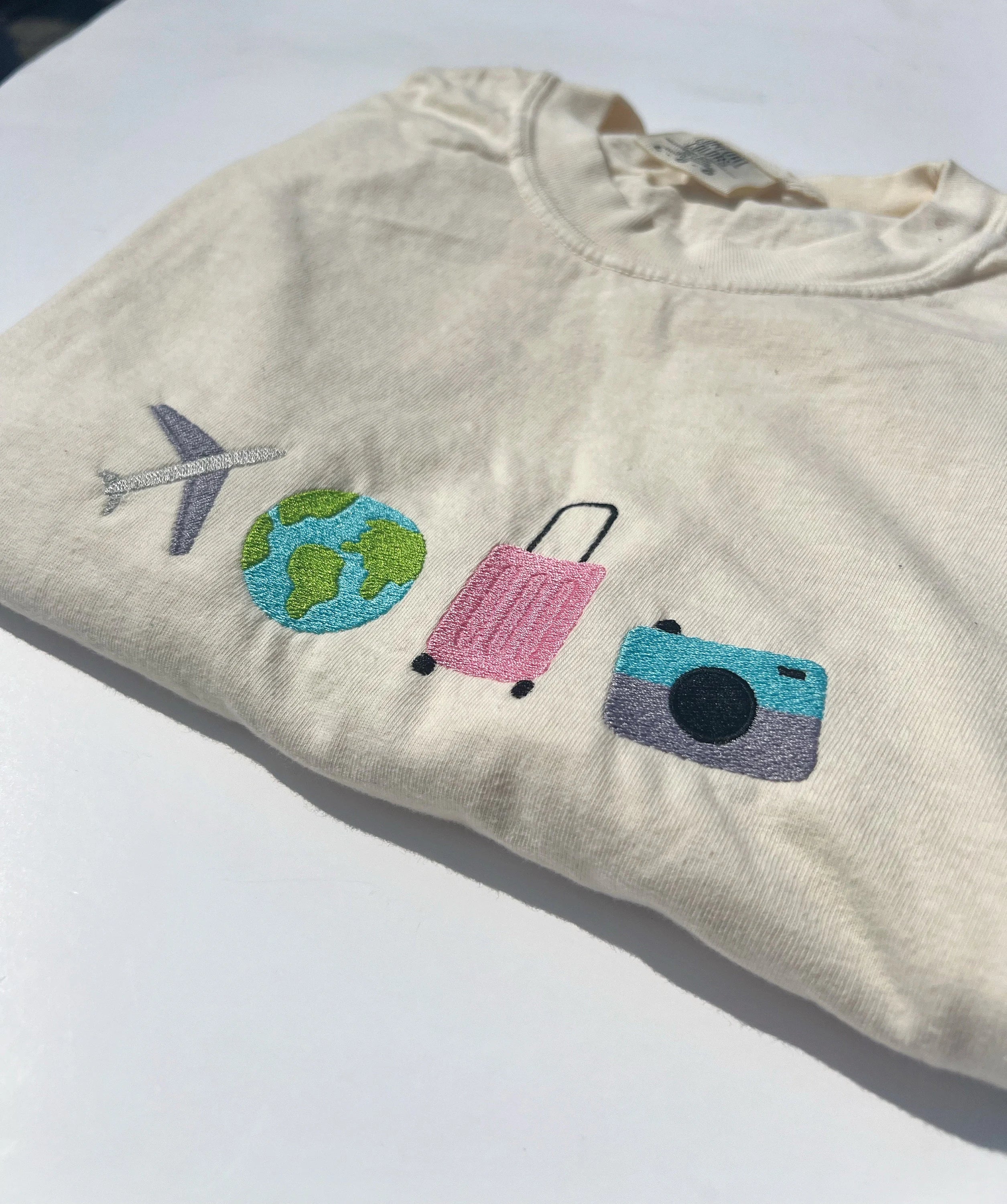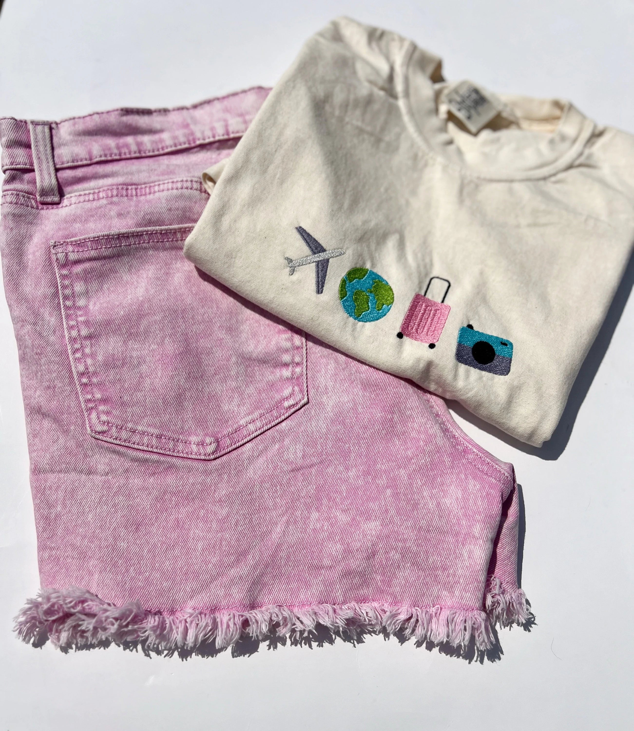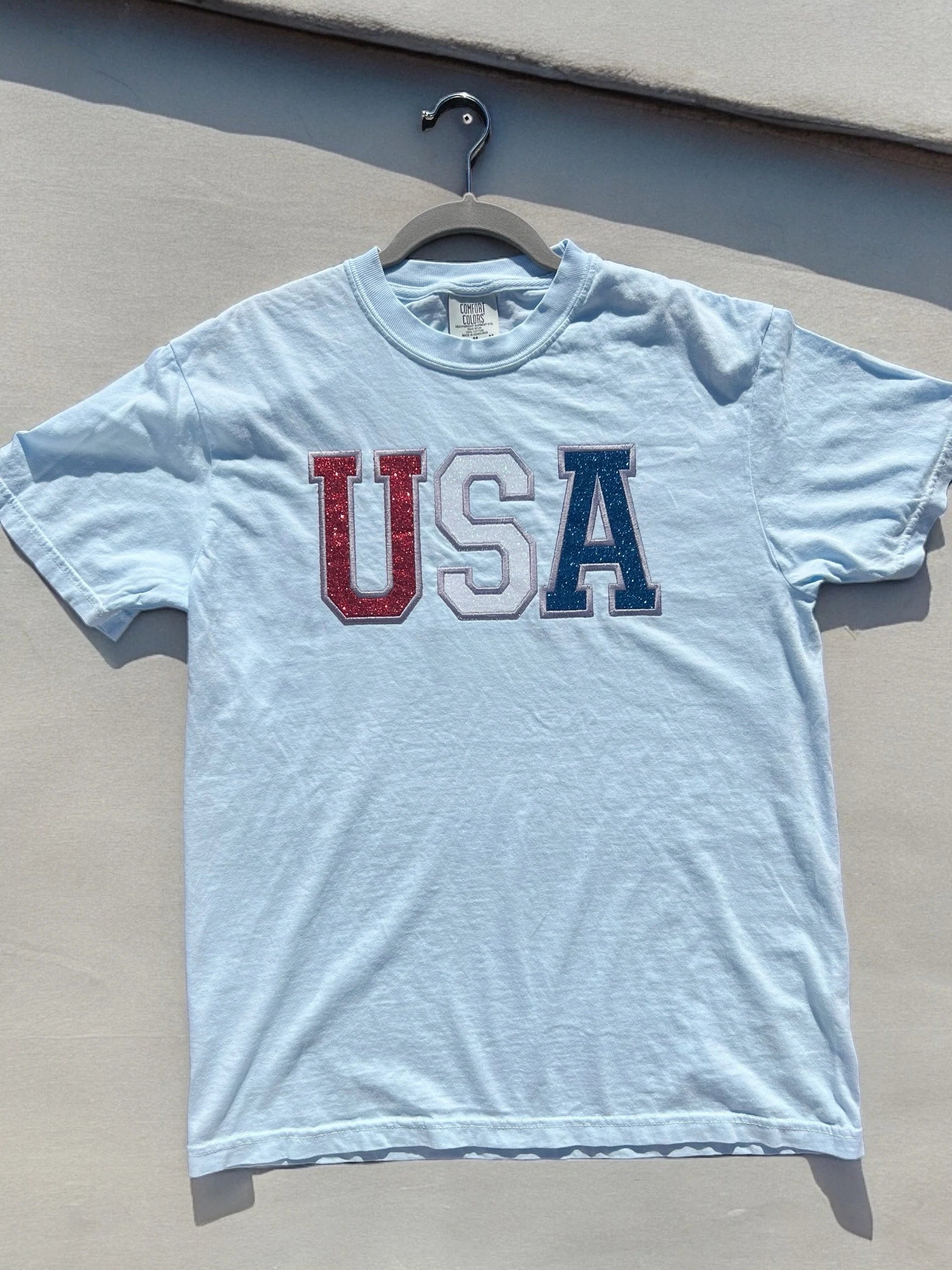 USA Embroidered T-Shirt with Red Bow – Patriotic & Playful