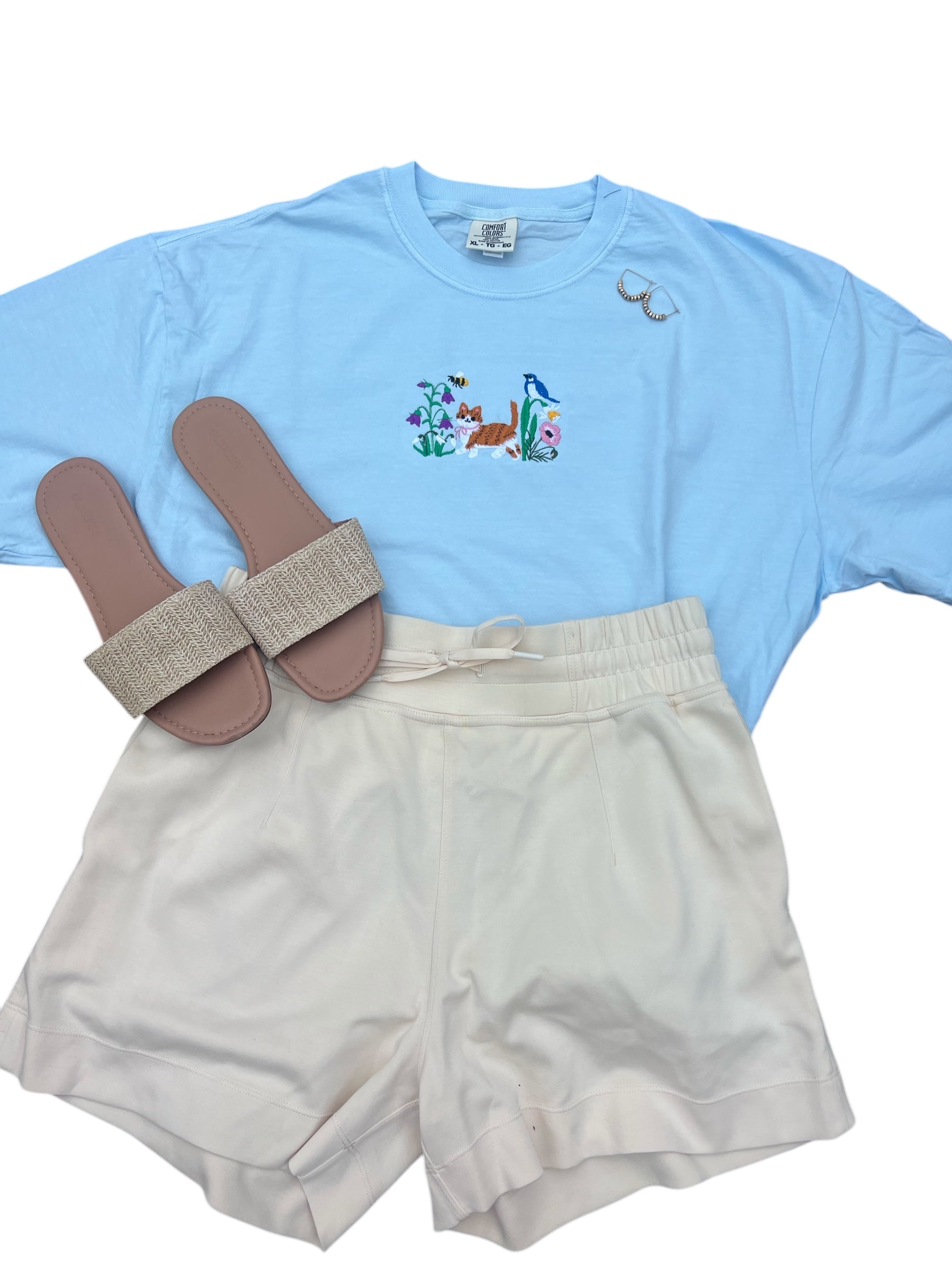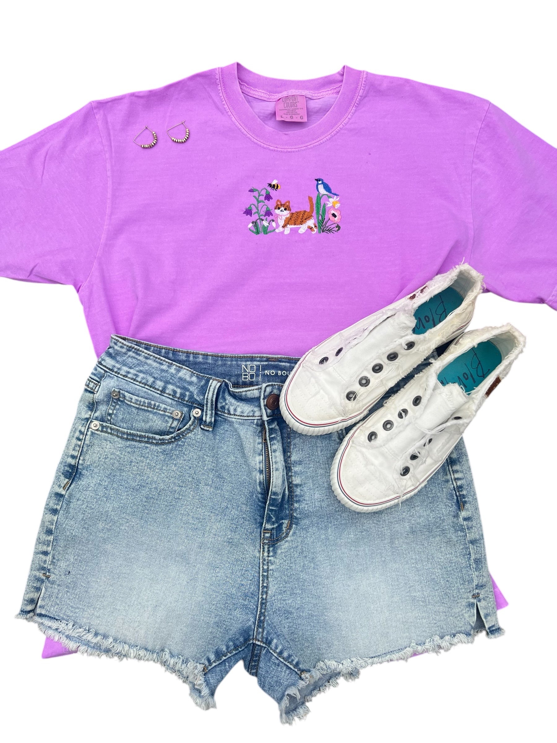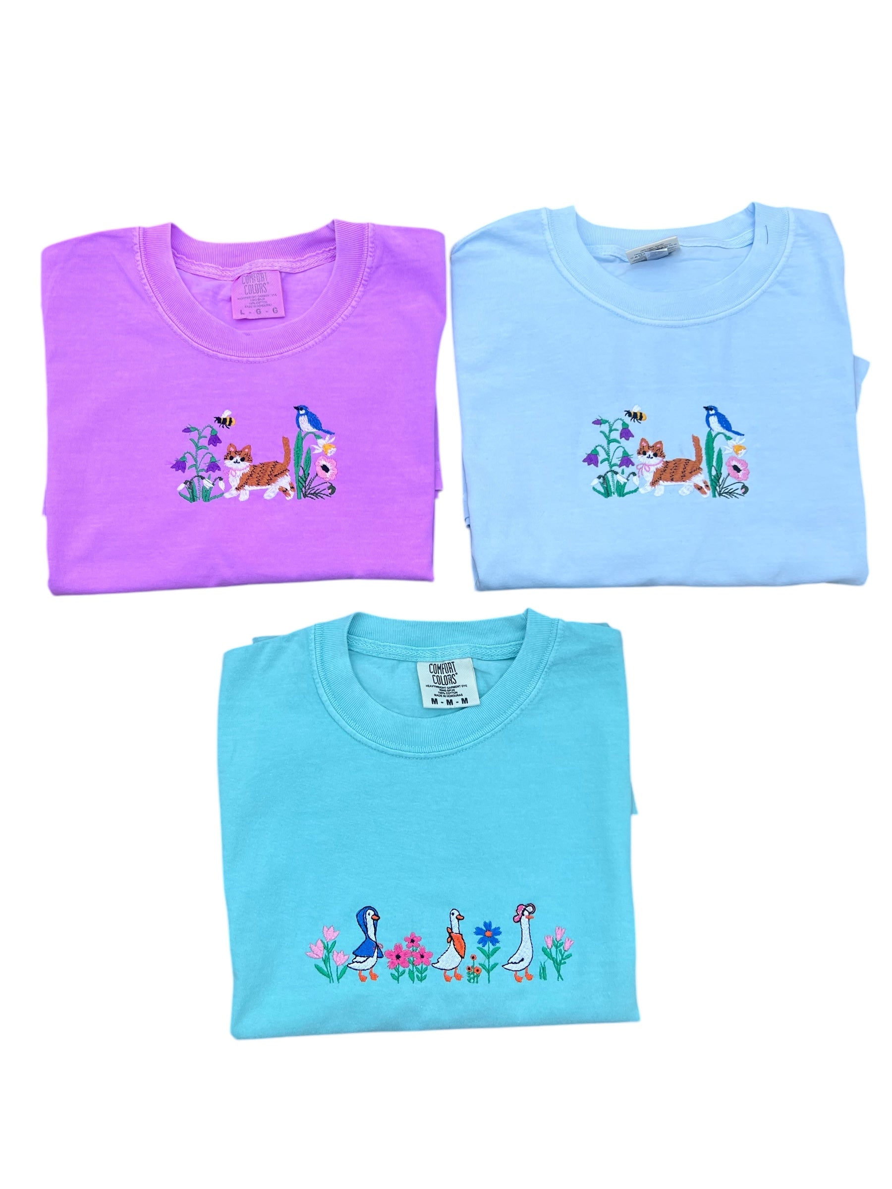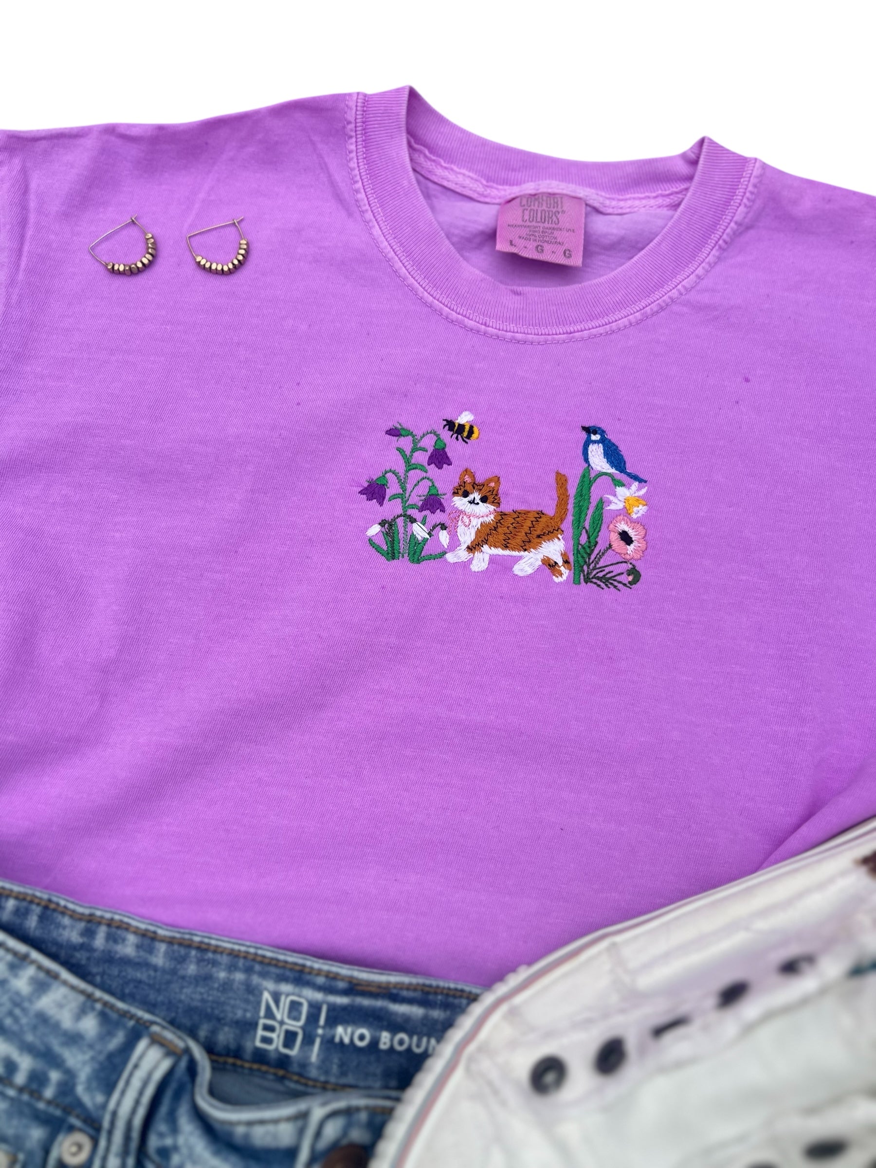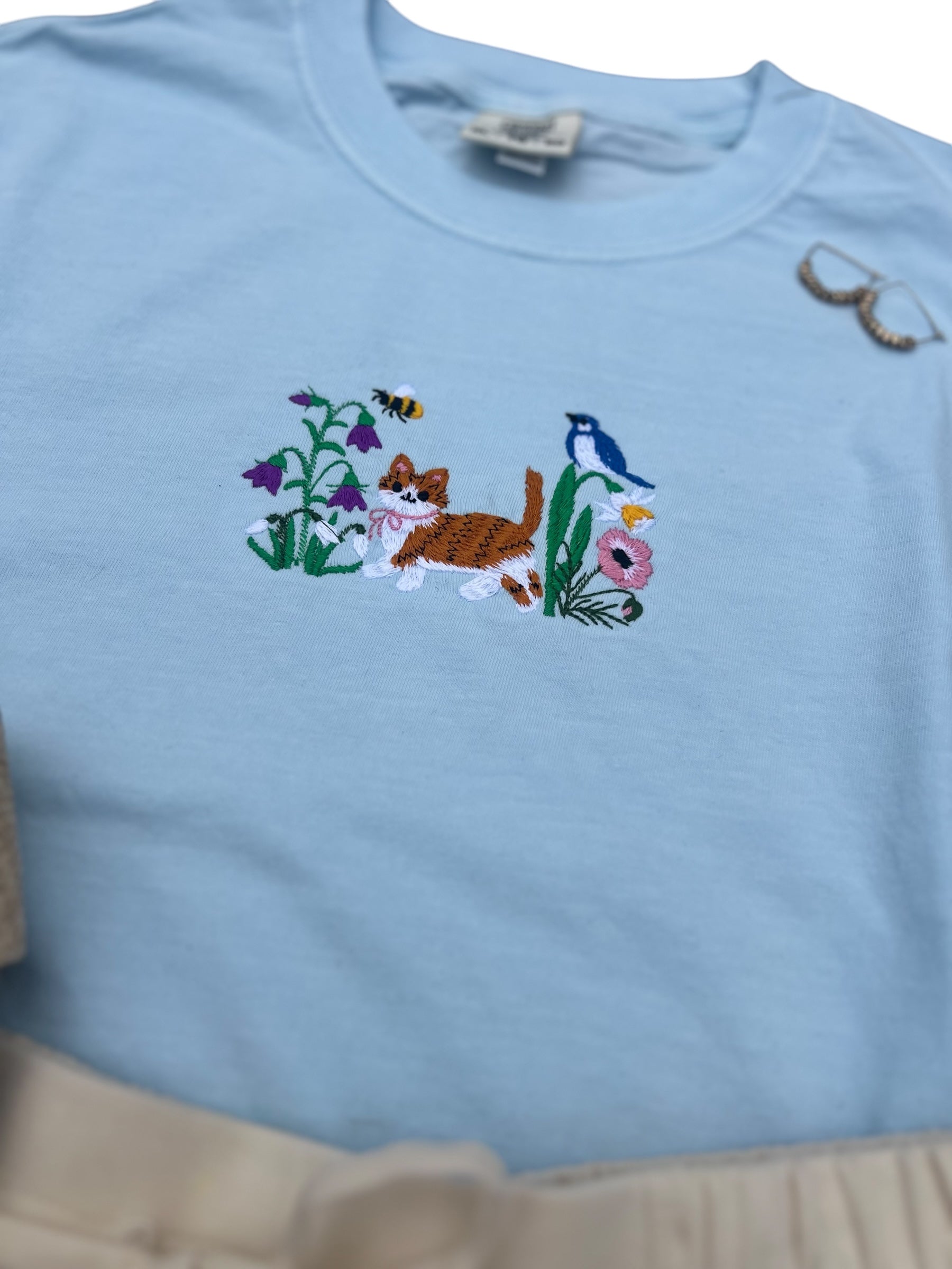 Cat with Flowers Spring Tee shirt Embroidered