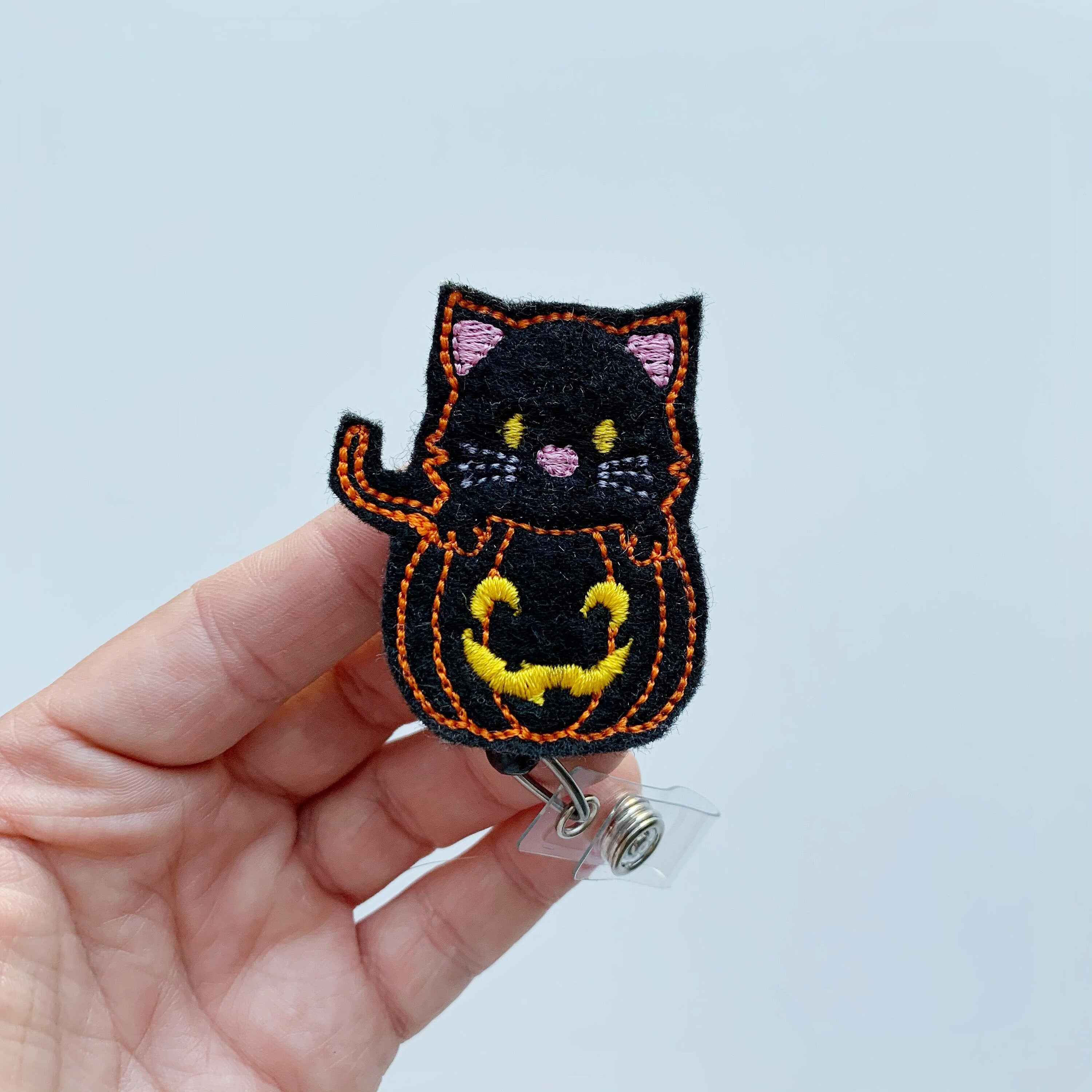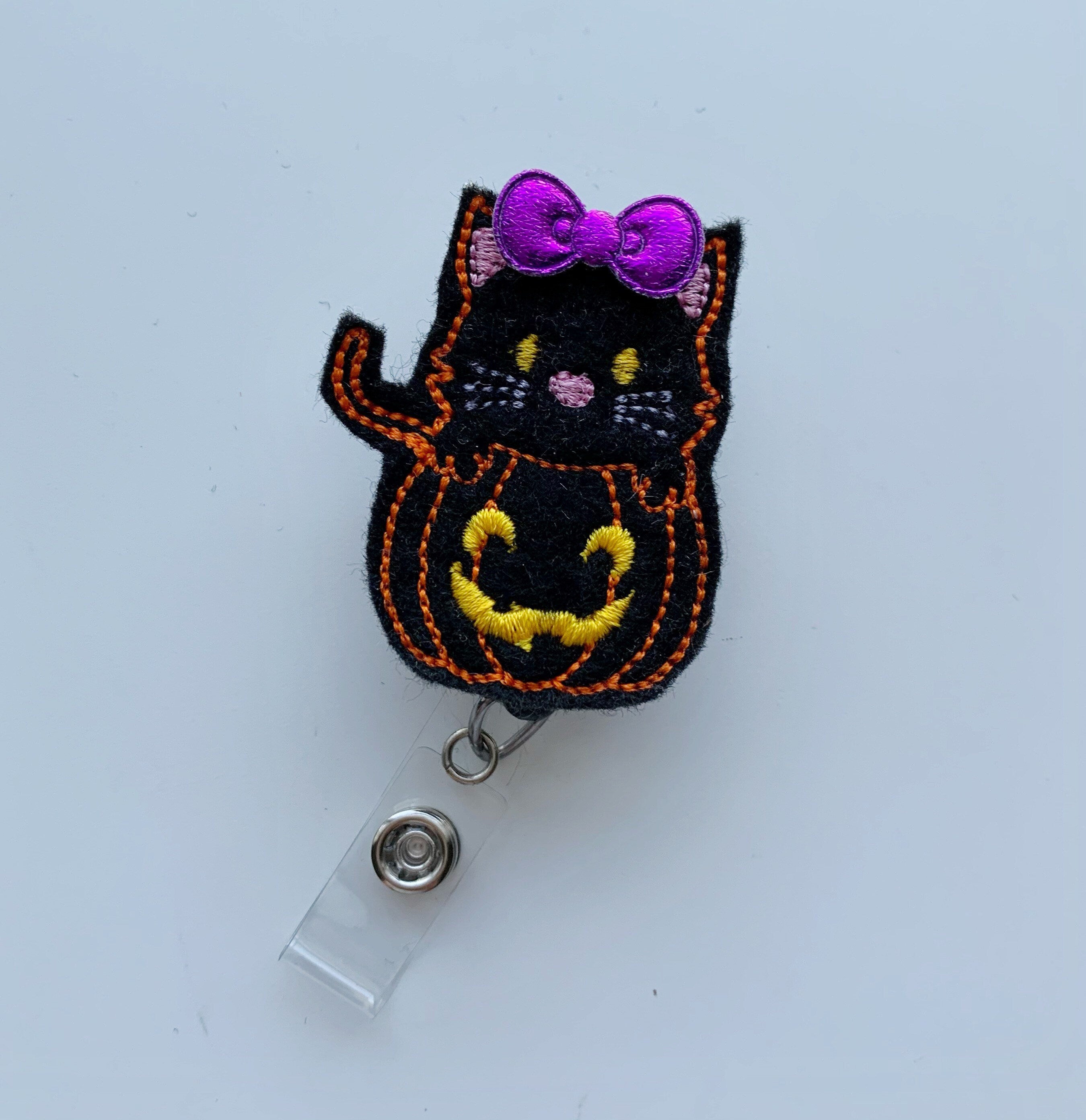 Black Cat & Pumpkin Badge Reel – Cute Halloween ID Holder