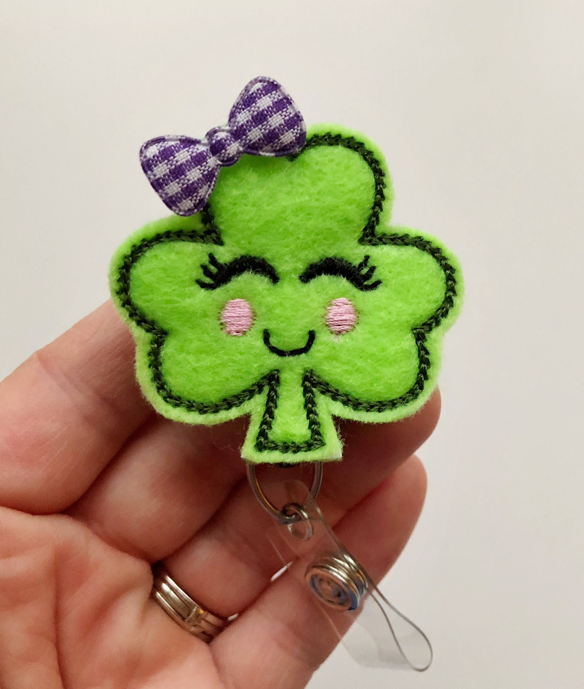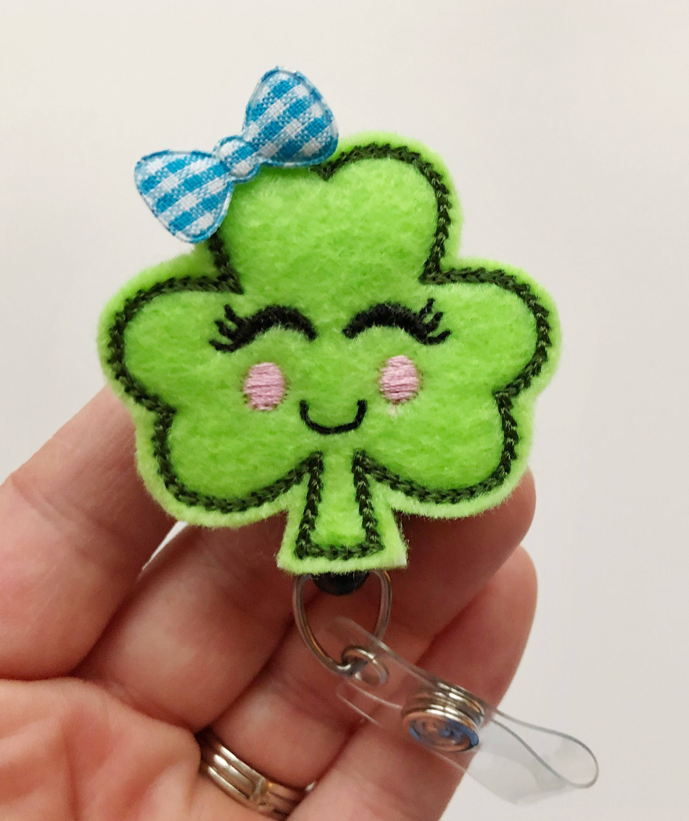 Cute Shamrock with Face Badge Reel – St. Patrick’s Day Retractable ID Holder | Fun Lucky Badge Accessory