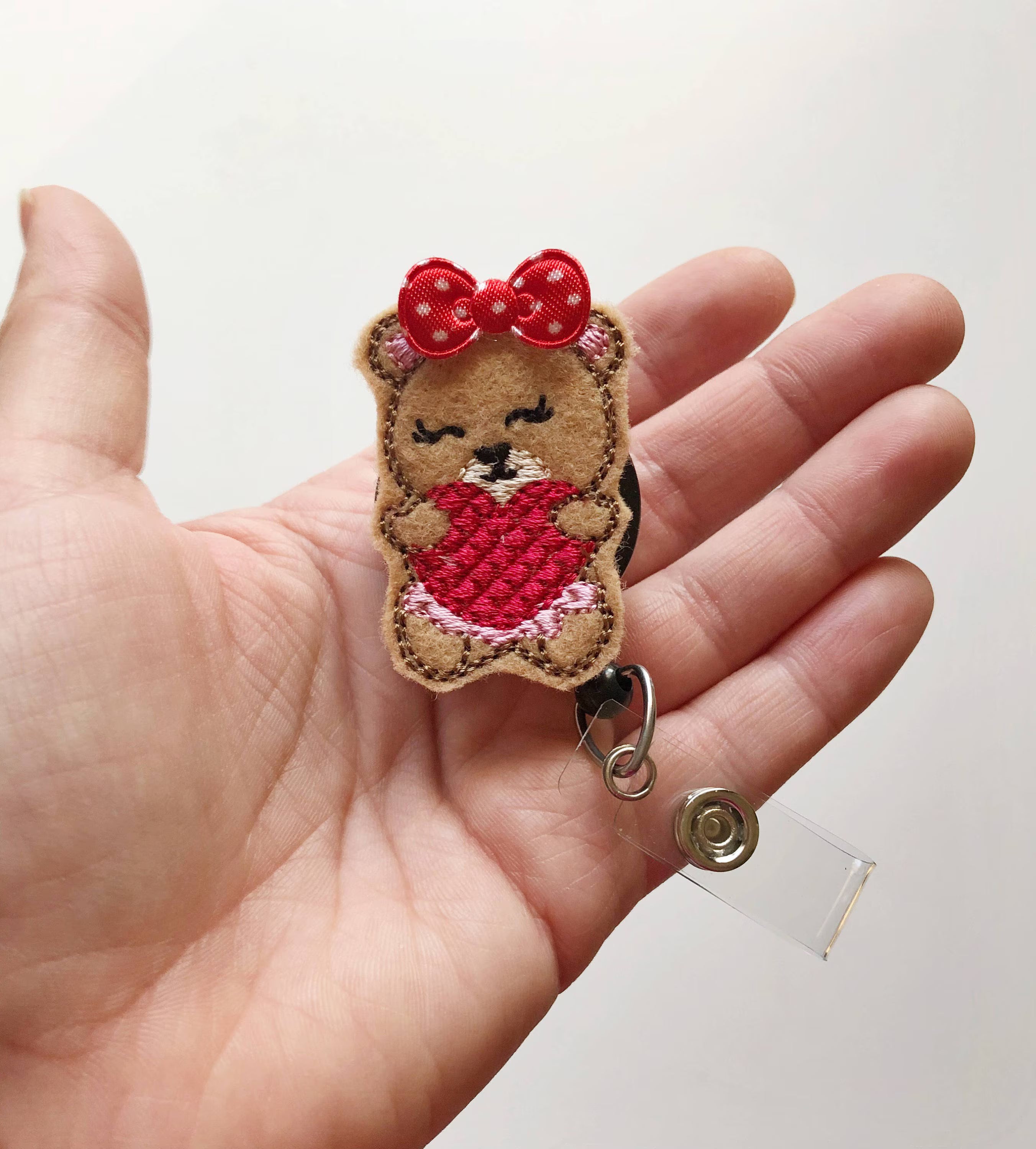 Cute Valentine Teddy Bear Badge Reel – Heart Design for Nurses & Teachers