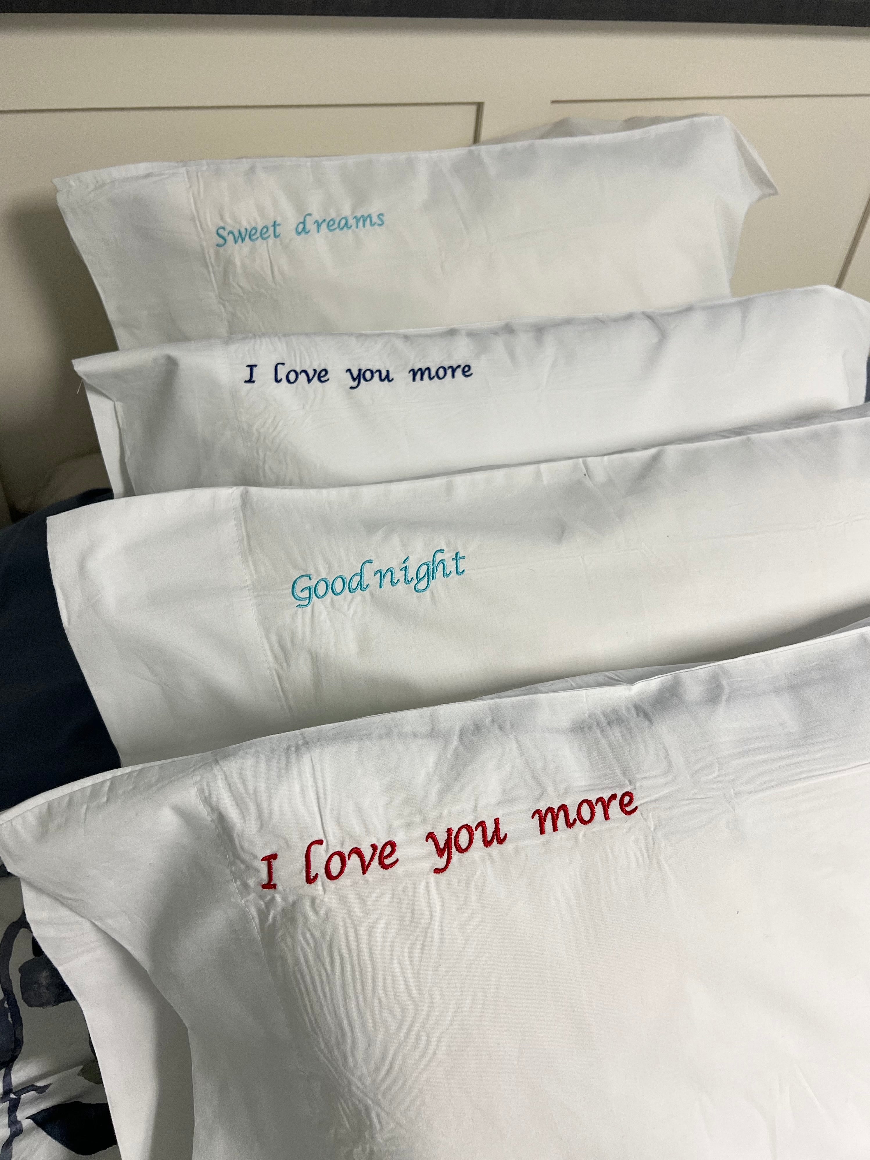 Embroidered Bed Pillowcase – Romantic Sayings or Personalized Initials