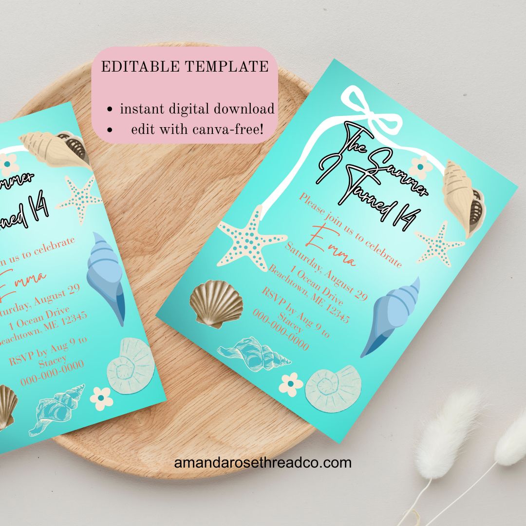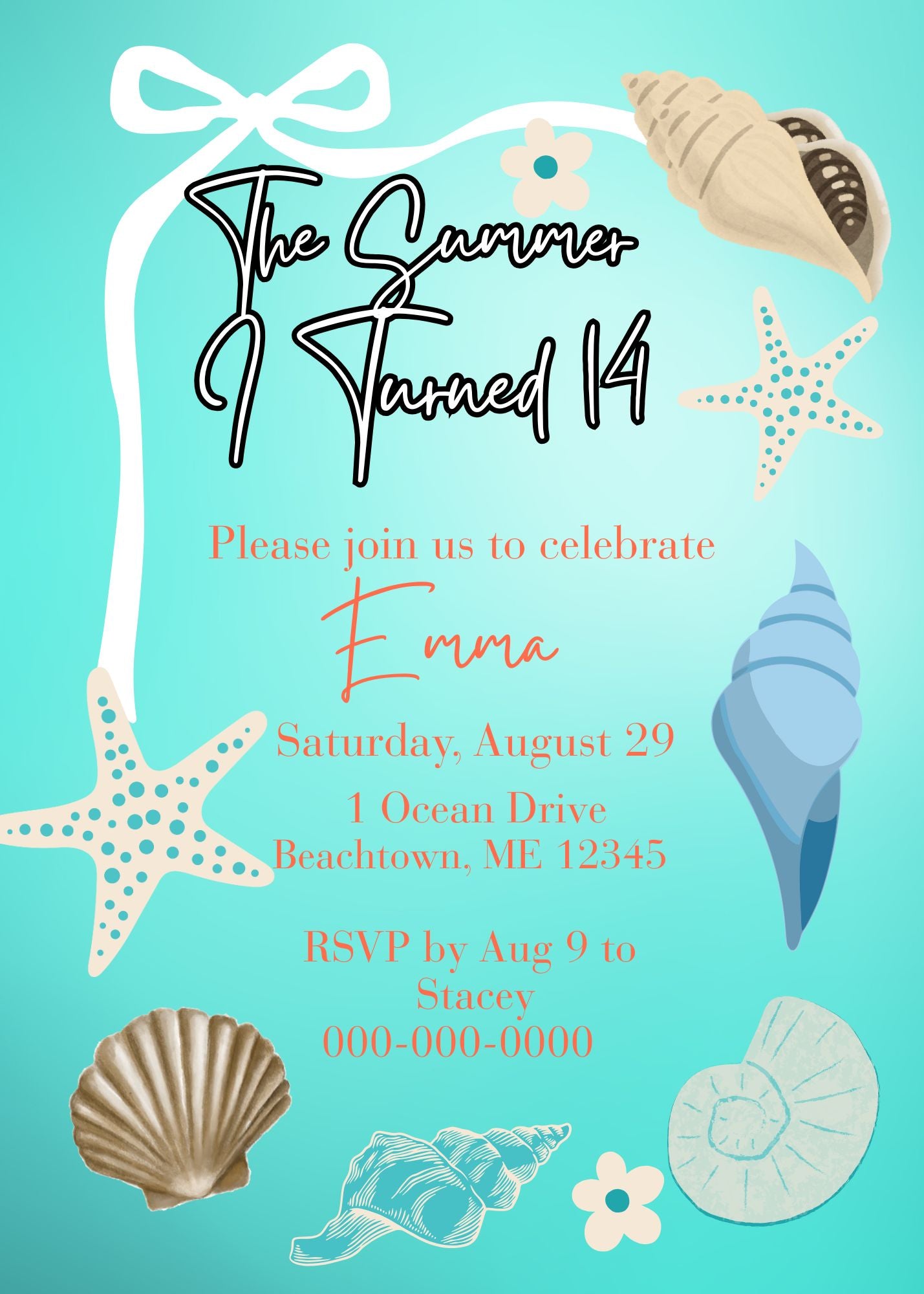 The Summer I Turned 14 – Editable Canva Birthday Party Invitation | Teen Girl Digital Download