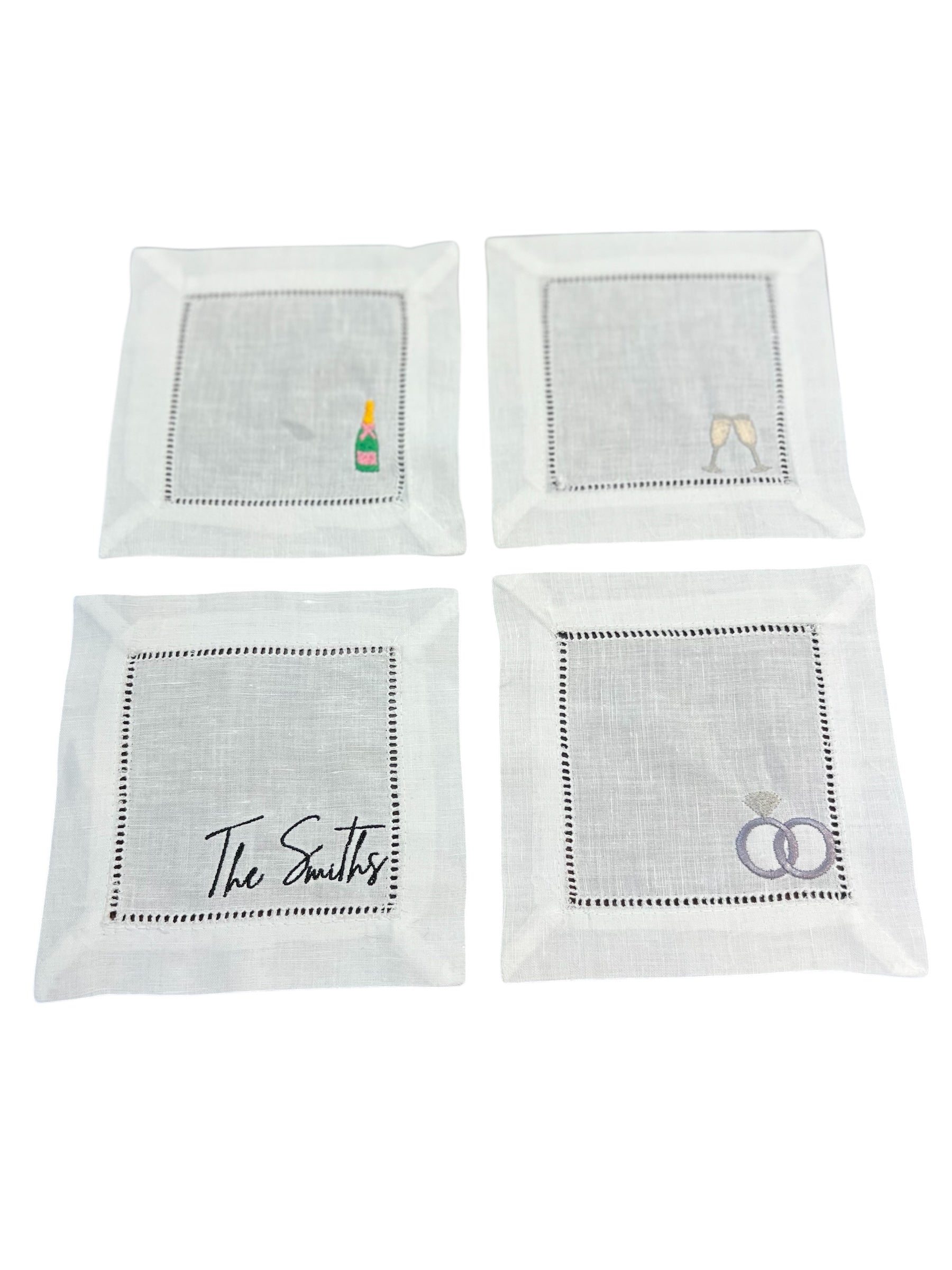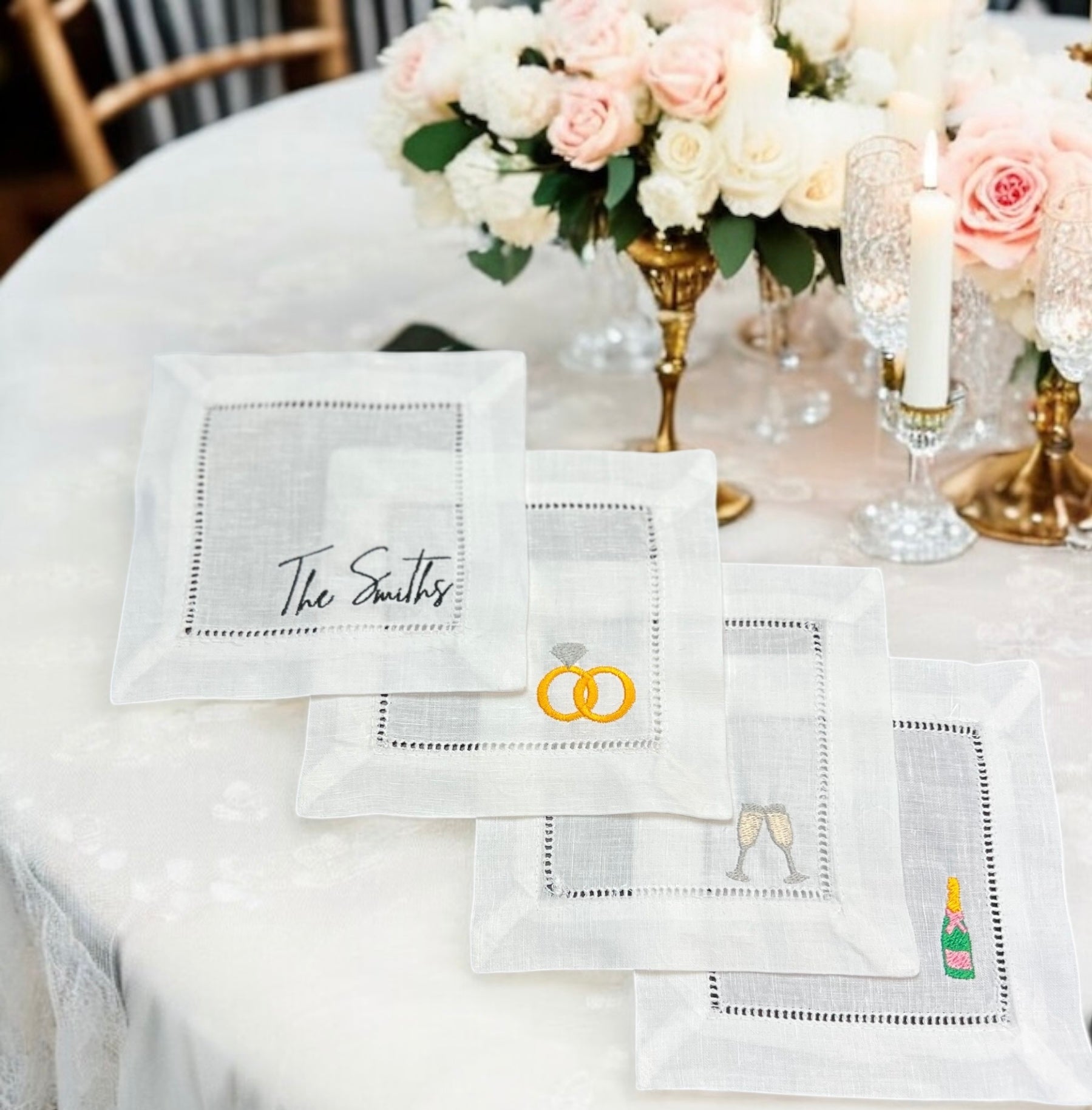 Perfect for gifting or adding a touch of personality to your own collection, these embroidered cocktail napkins are the ideal way to impress your guests and make every moment feel extraordinary.