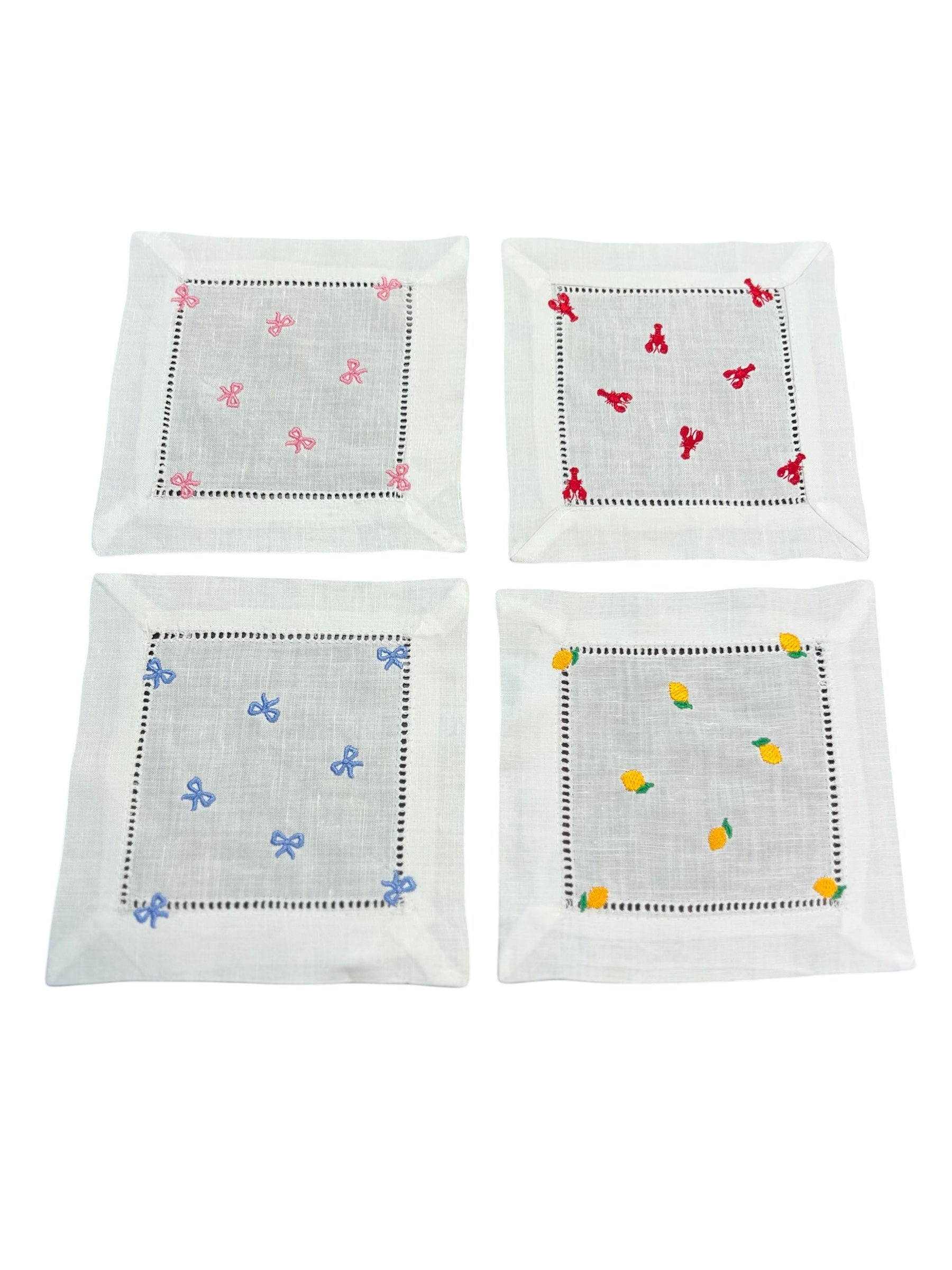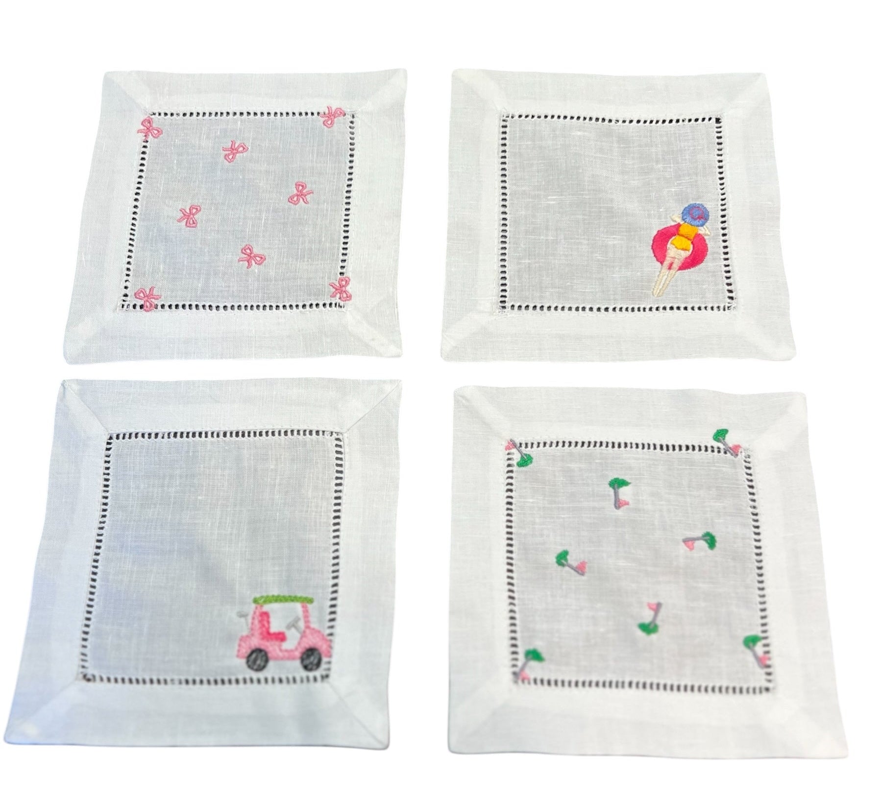 Discover the perfect blend of elegance and charm with my Embroidered Cocktail Napkins Collection. Each napkin is expertly crafted from line fabric and features intricate, beautiful embroidery that adds a unique touch to any occasion. From whimsical designs to sophisticated motifs, my collection offers a variety of styles to suit every taste, from tropical cocktails to elegant weddings.