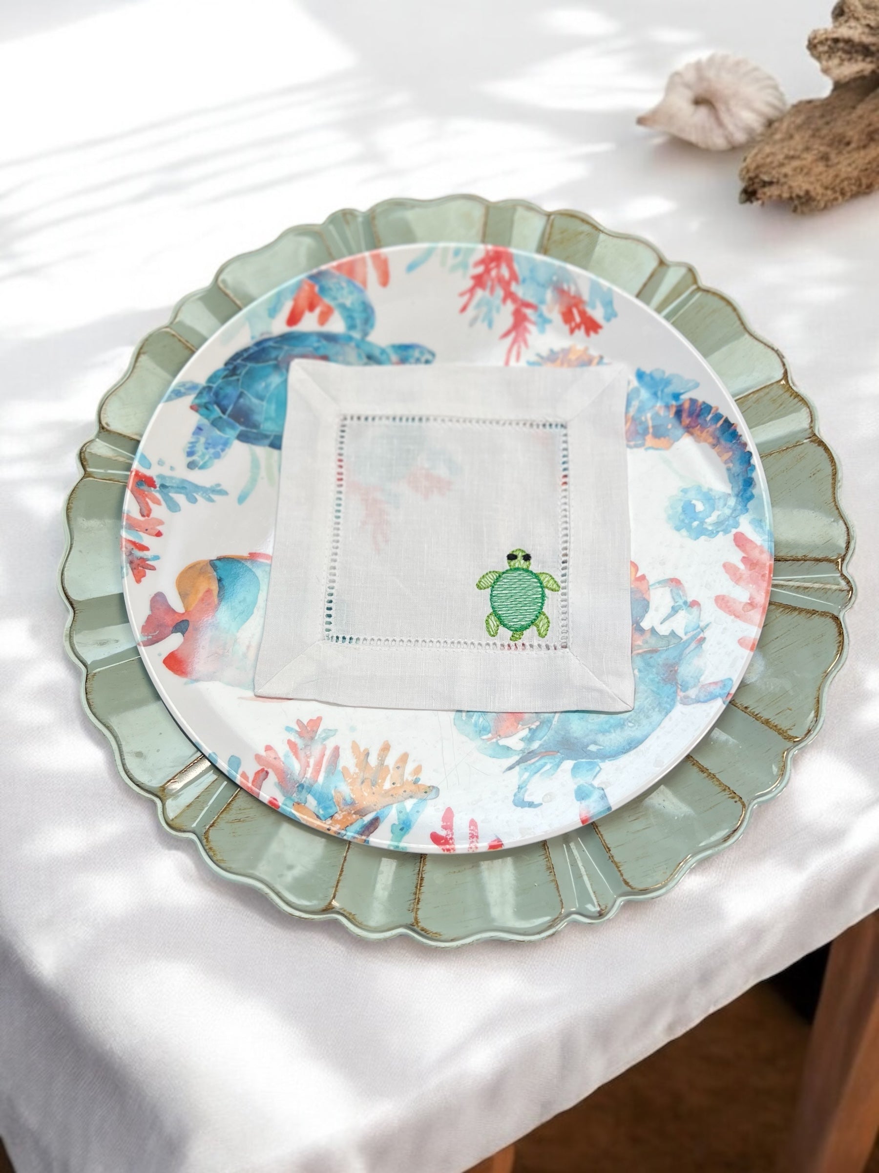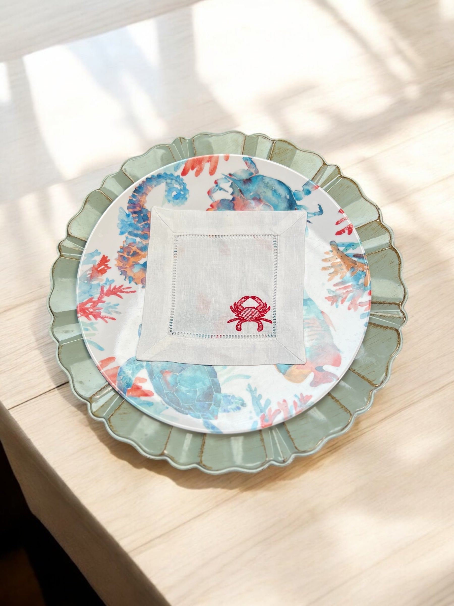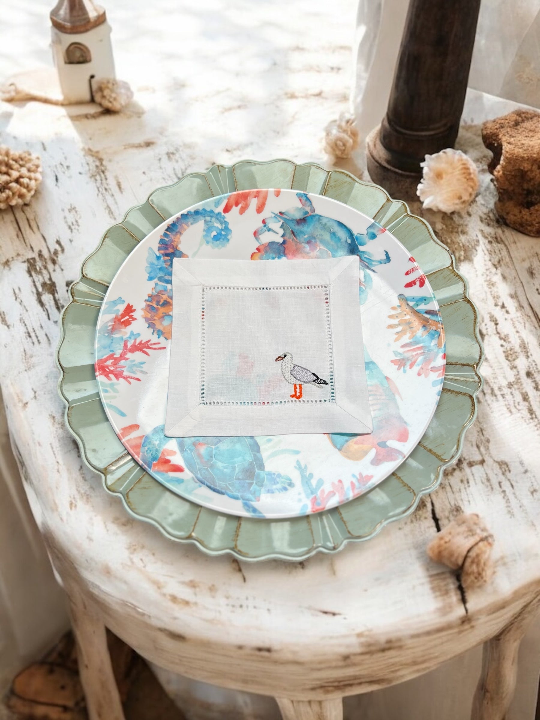 Bring the relaxed vibes of the coast to your next gathering with my embroidered Cocktail Napkins featuring stunning beach-inspired designs. Each napkin is beautifully crafted from linen high-quality fabric and adorned with embroidery designs showcasing scenes of seagulls, sea turtles, crabs, and a custom beach town.