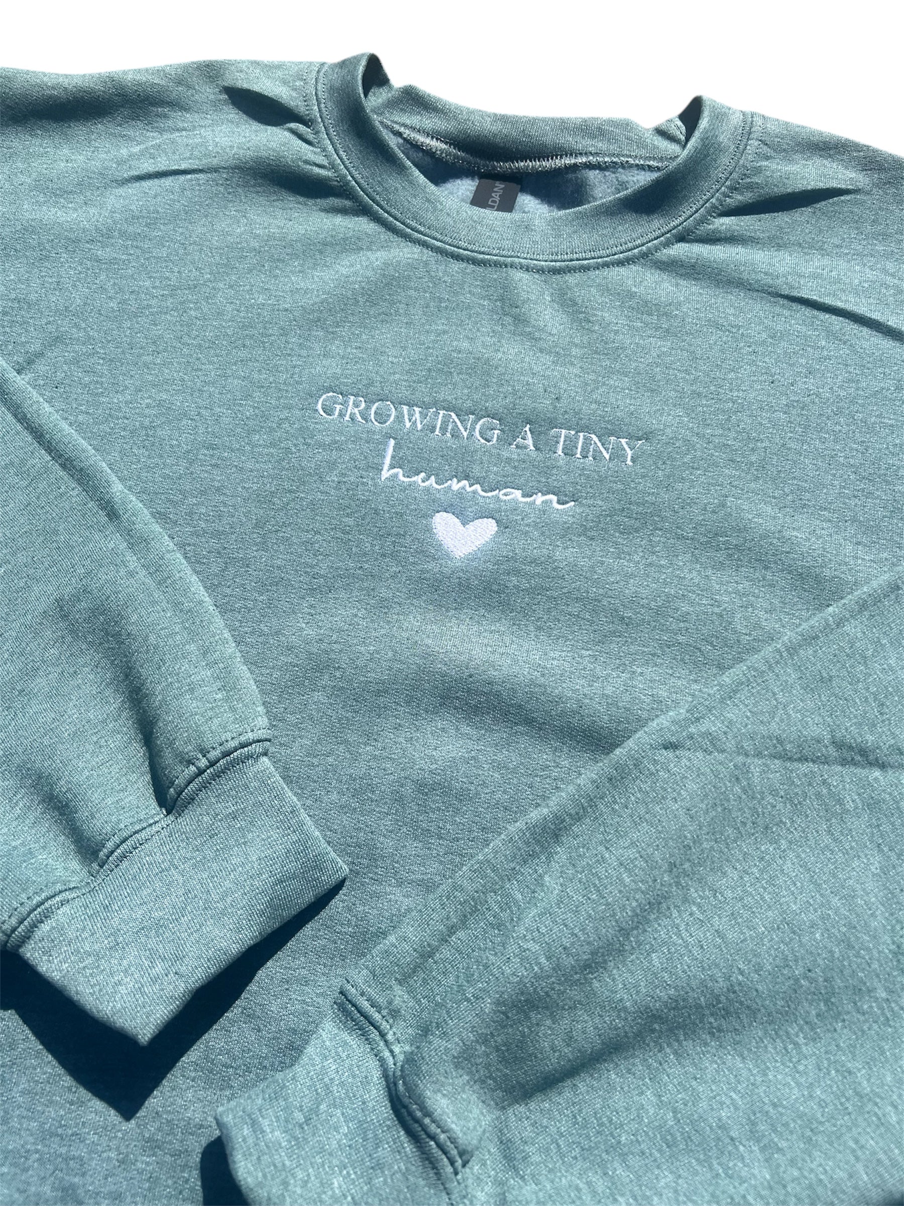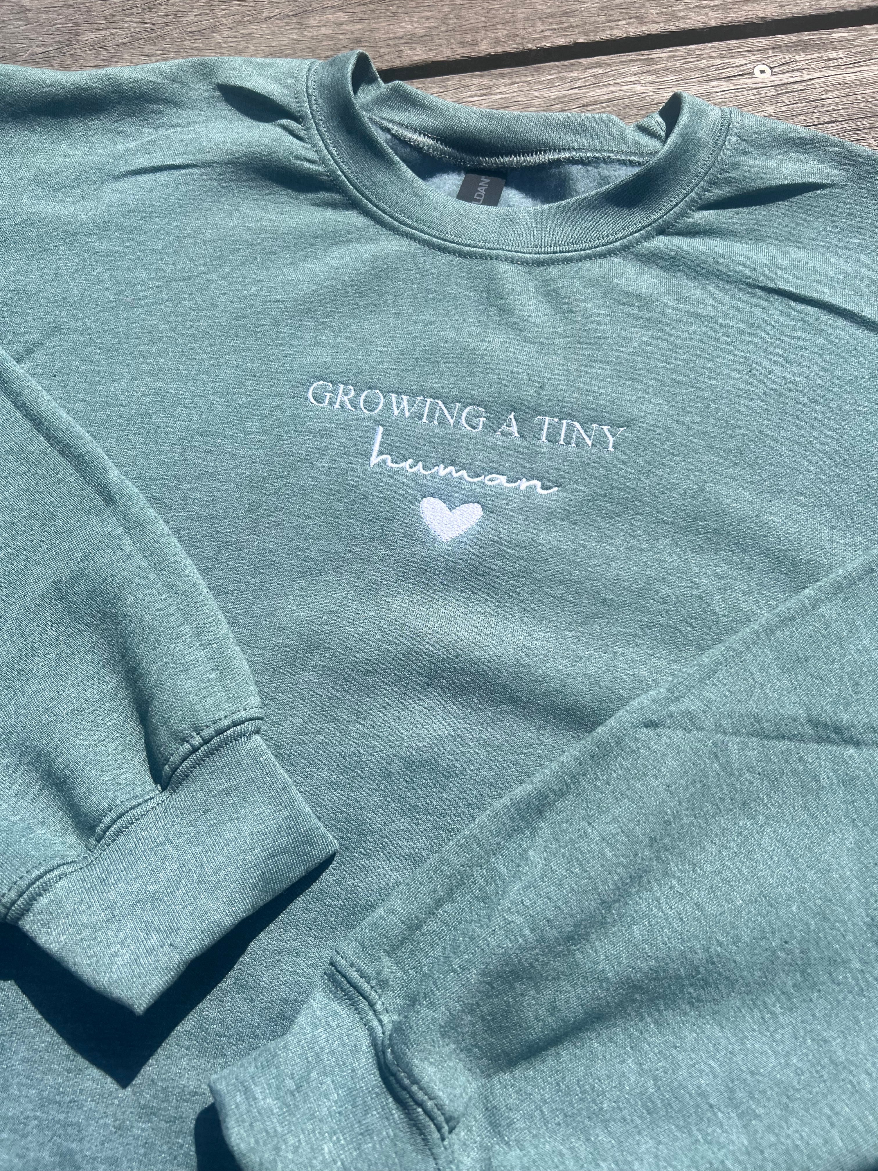 Growing a Tiny Human Pregnancy Sweatshirt Embroidered
