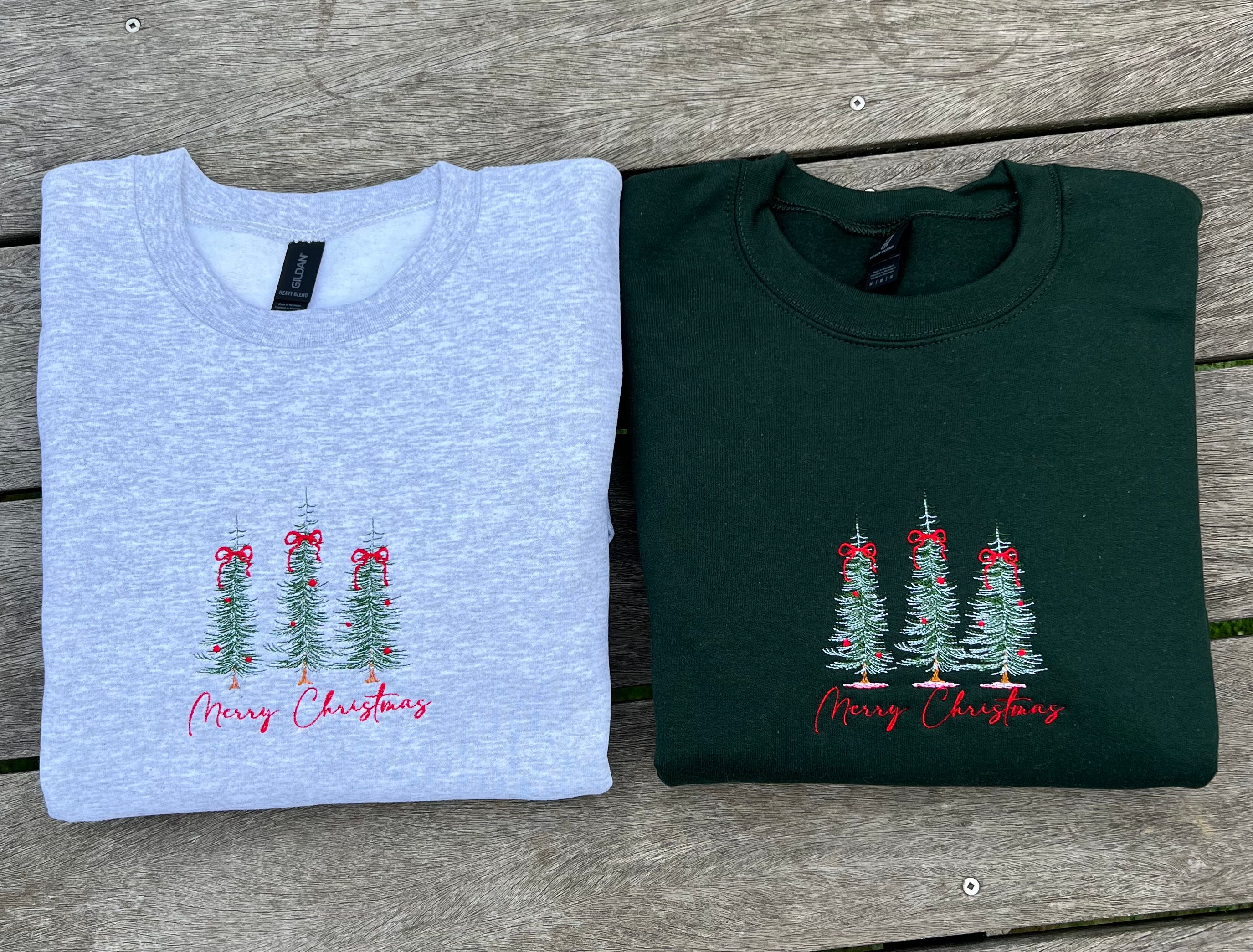 Merry Christmas Embroidered Sweatshirt (Trees Design)