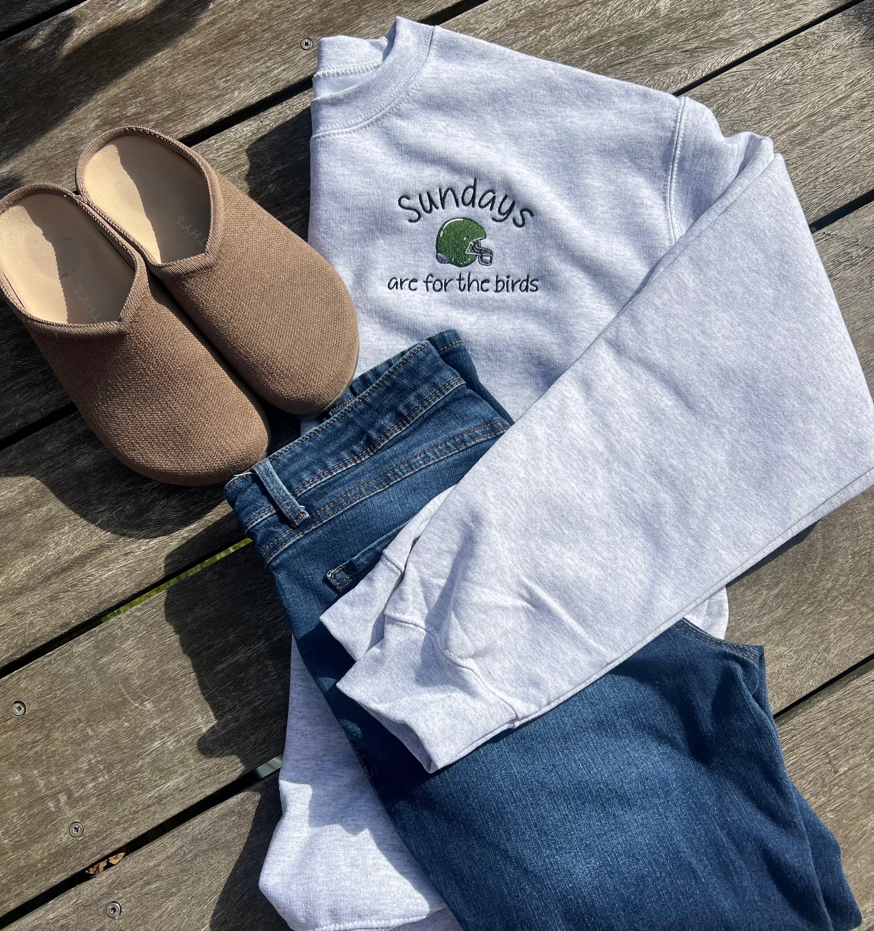 Sundays are for football, cozy vibes, and showing love for your team 💚 My Sundays Are for the Birds Embroidered Sweatshirt is the perfect mix of comfort and Philly pride. Designed for true fans, this crewneck is soft, stylish, and made to last.