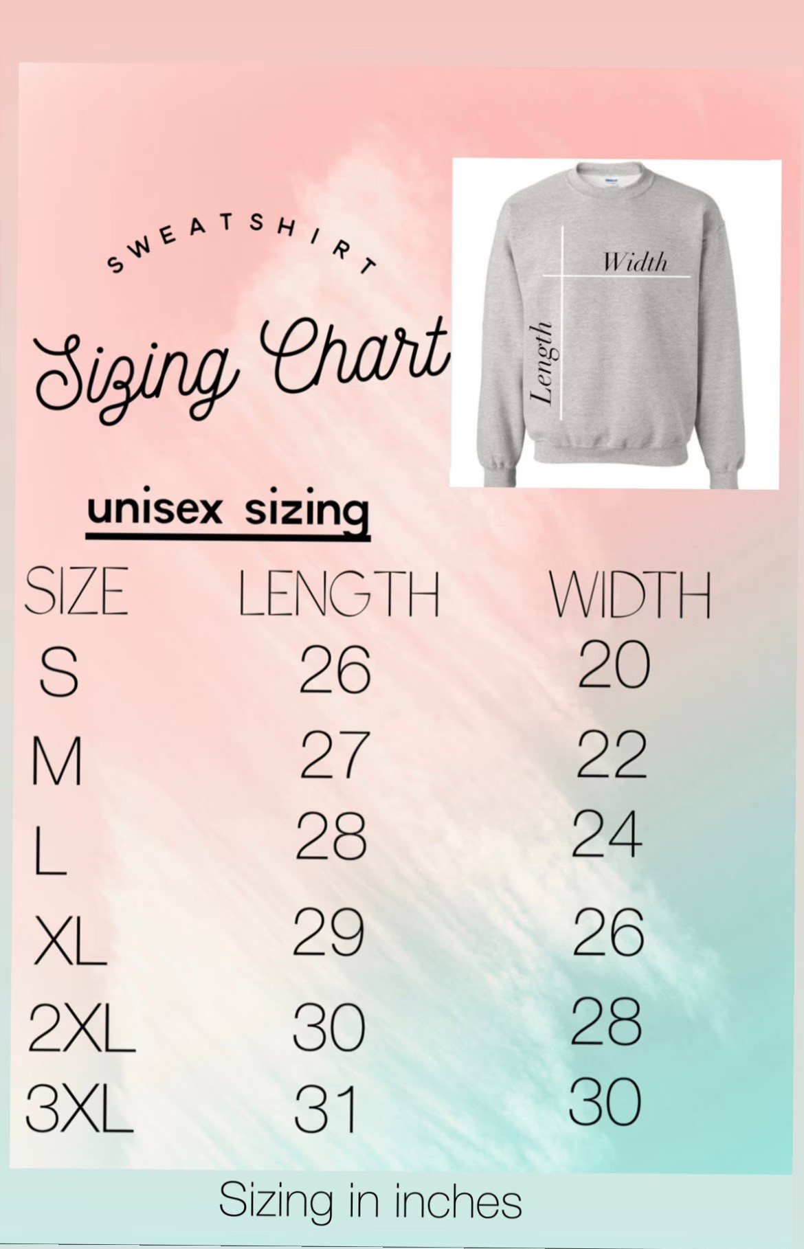 Sweatshirts are unisex size.  See sizing chart for measurements.
