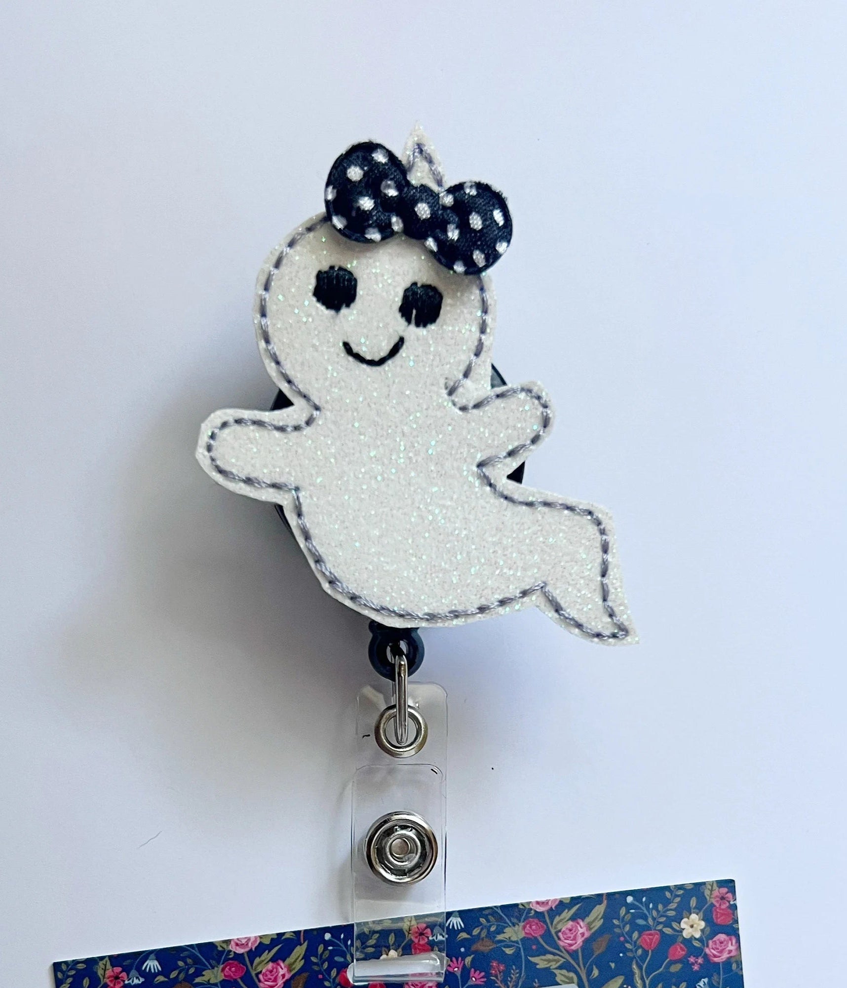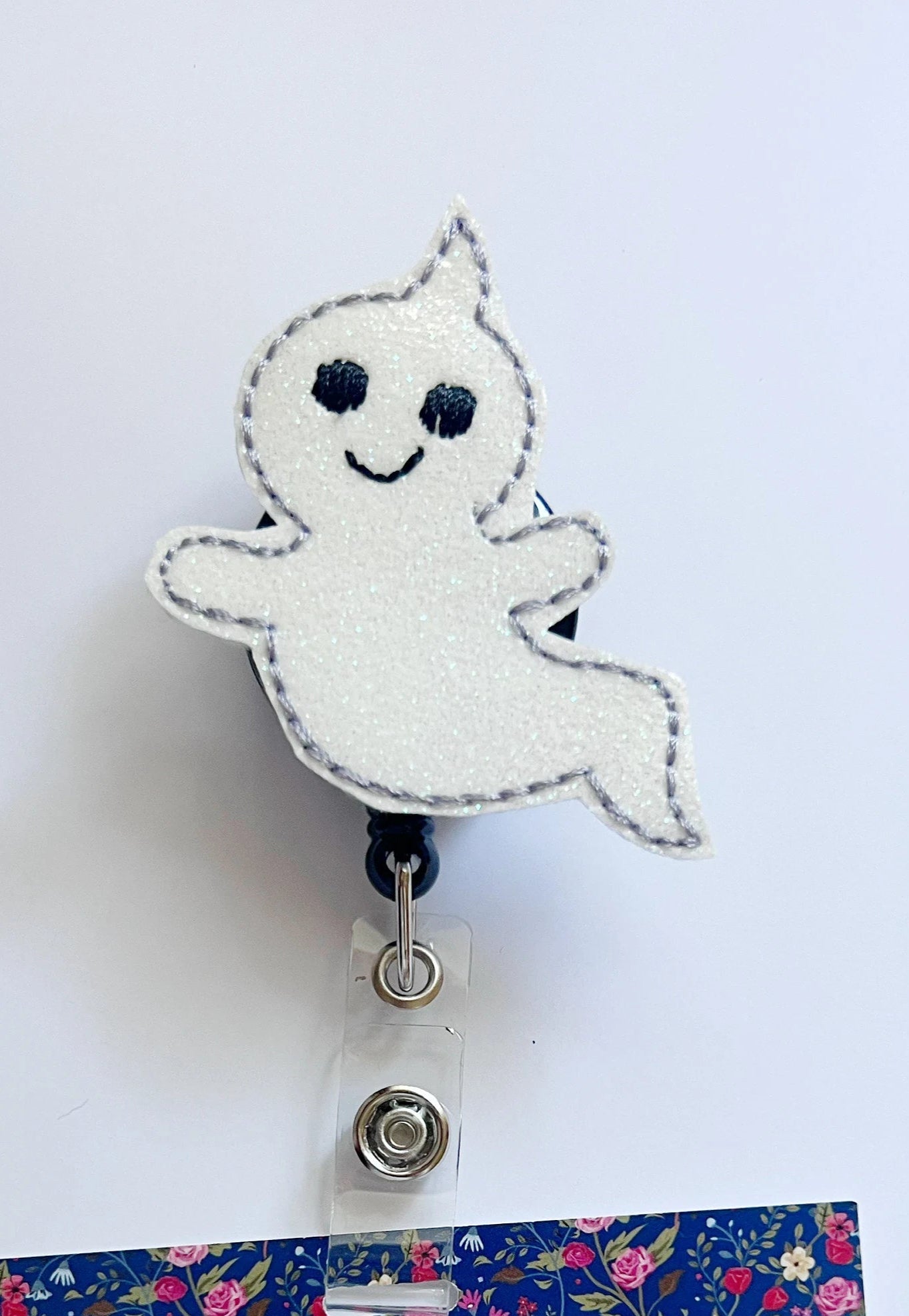 Glitter Ghost Badge Reel – Spooky-Cute Halloween ID Holder