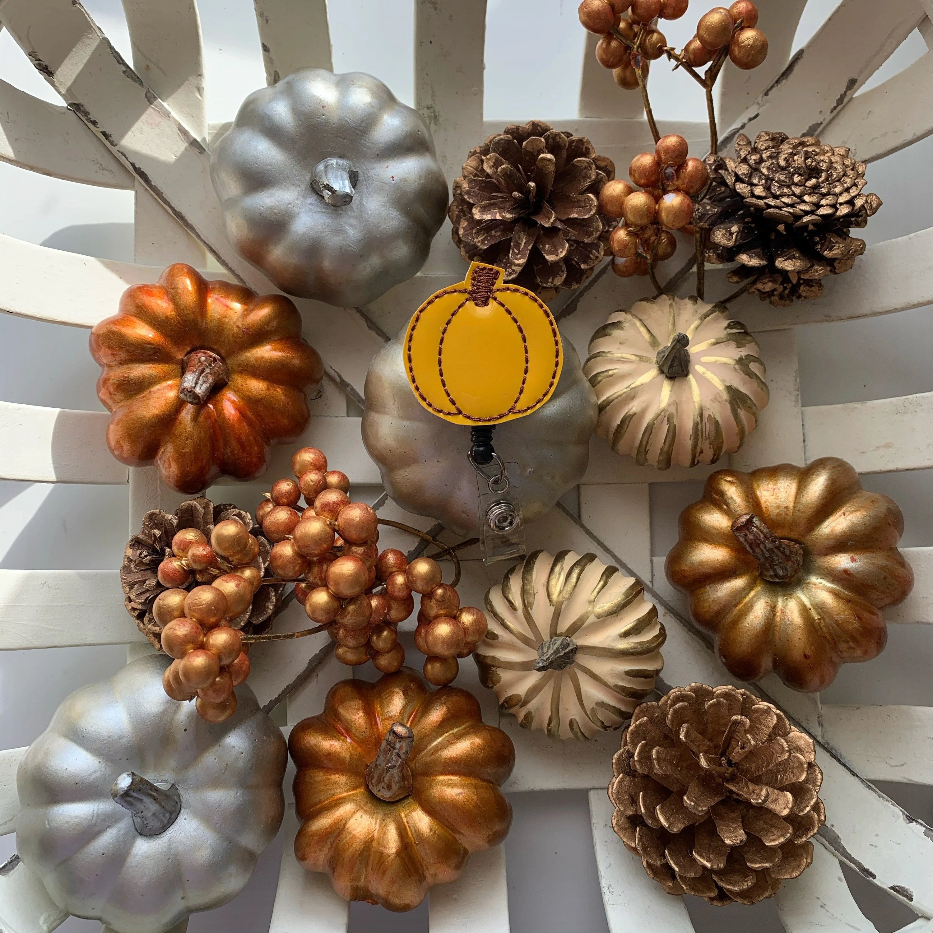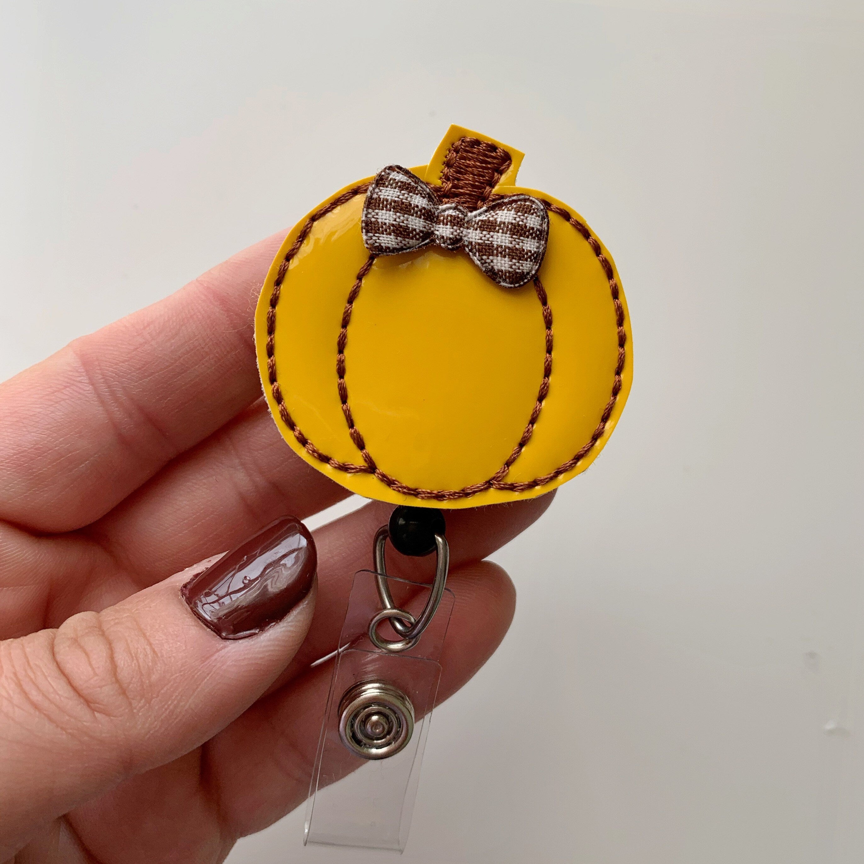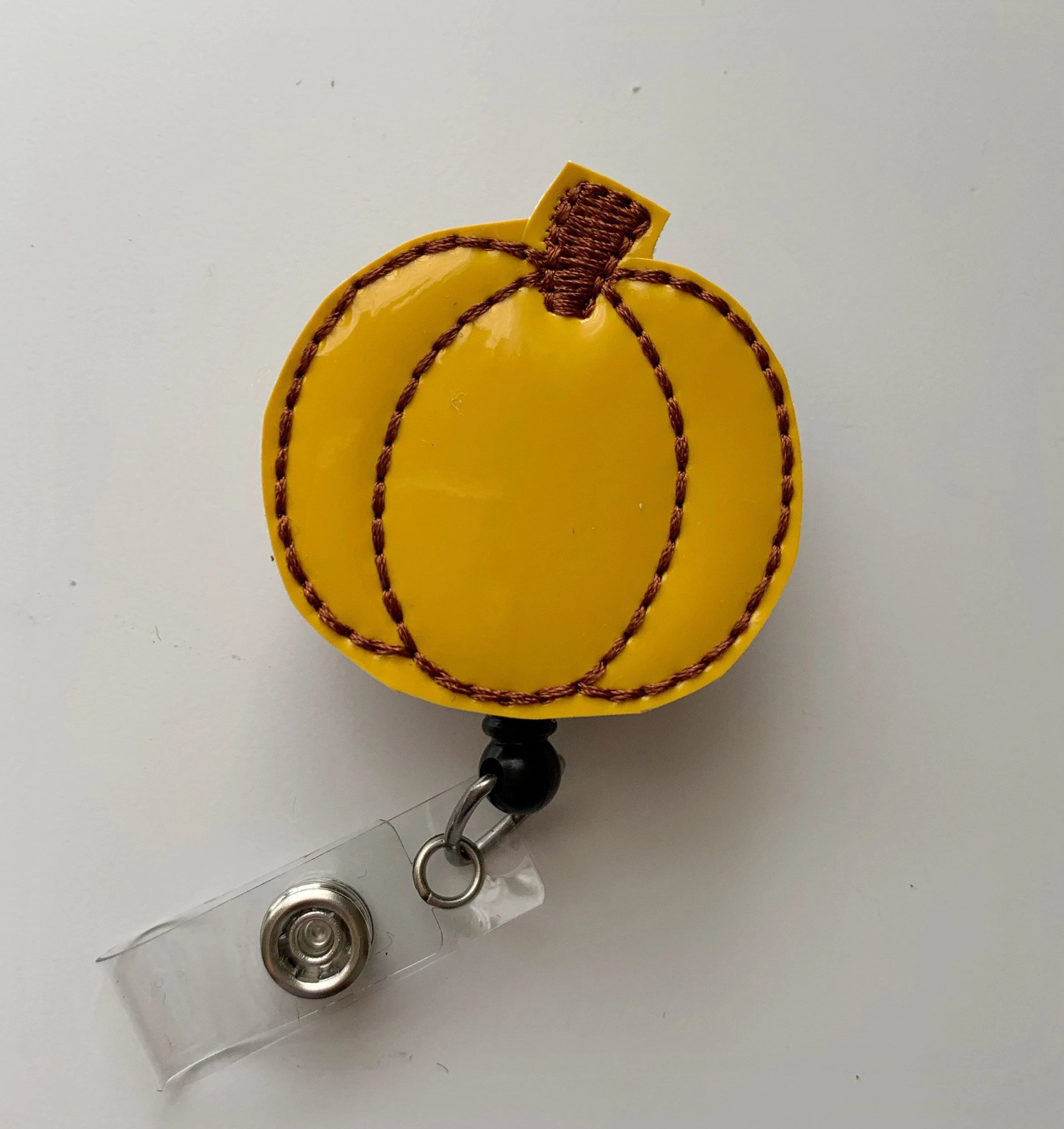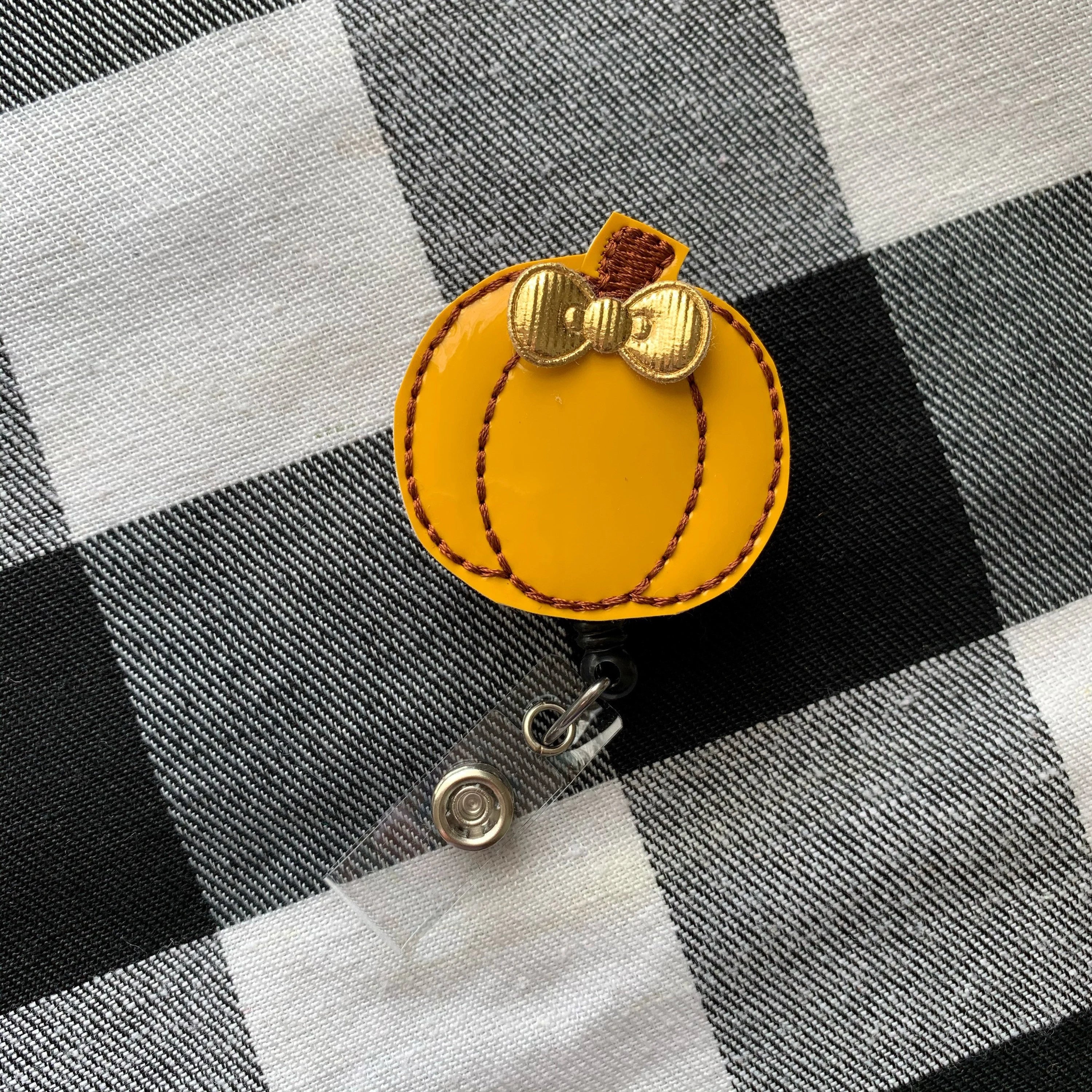 Yellow Pumpkin Vinyl Badge Reel – Bright & Cheerful Fall ID Holder