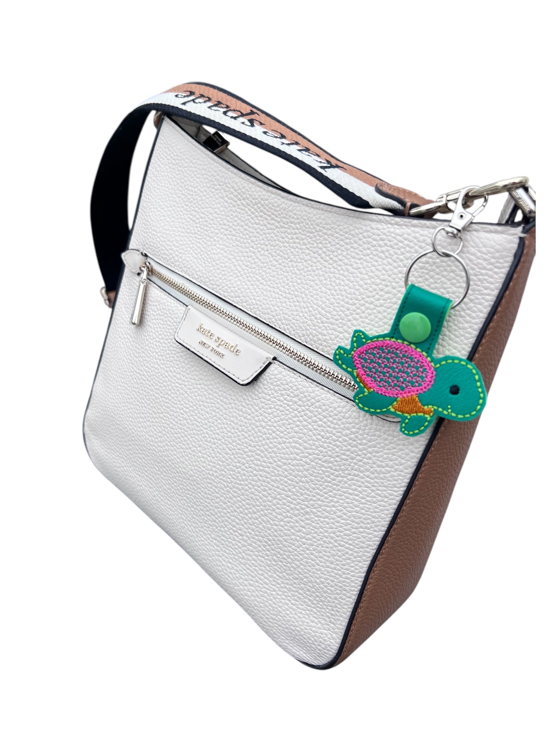 Handcrafted Embroidered Sea Turtle Keychain – Coastal Charm Accessory