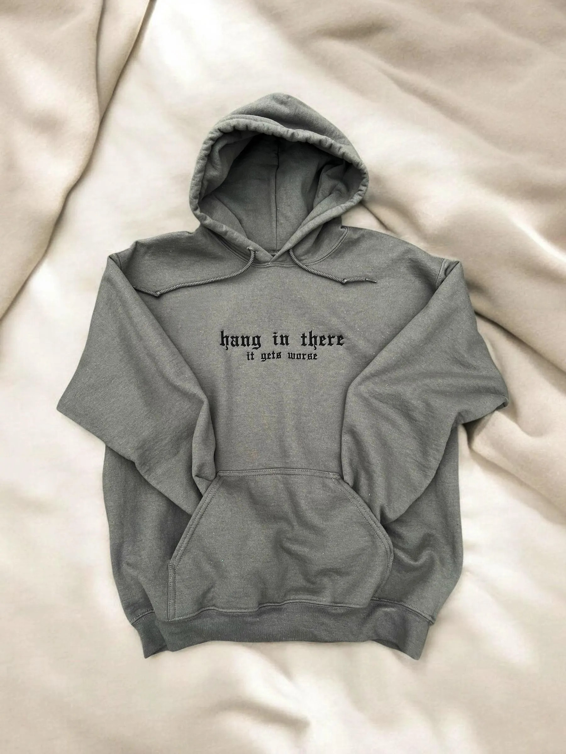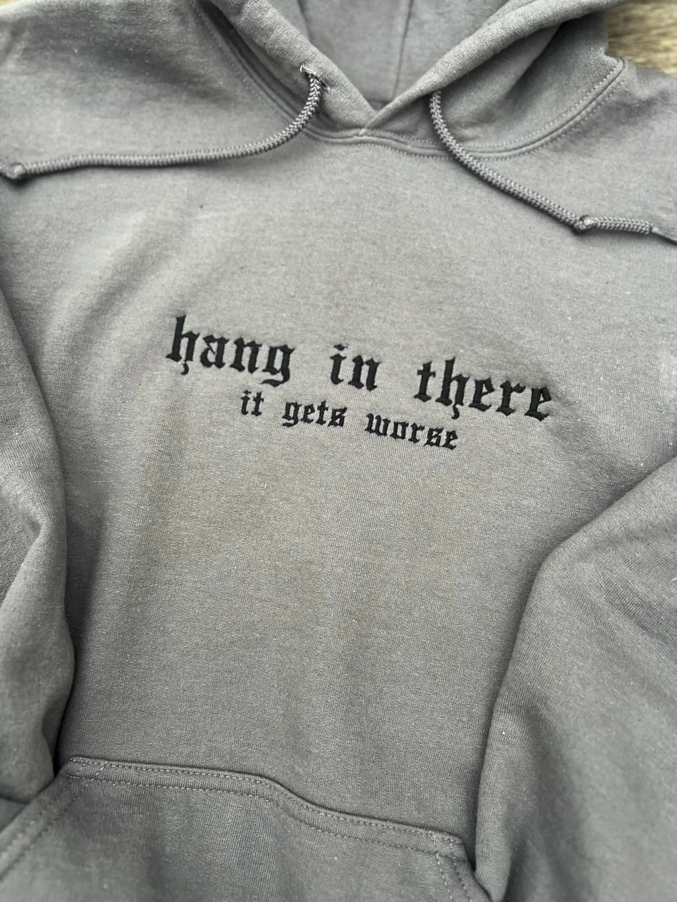 Hang in there it gets worse, funny hoodie, sarcastic hoodie, emo hoodie, embroidered hoodie, funny sweatshirt, it gets worse, unisex hoodie