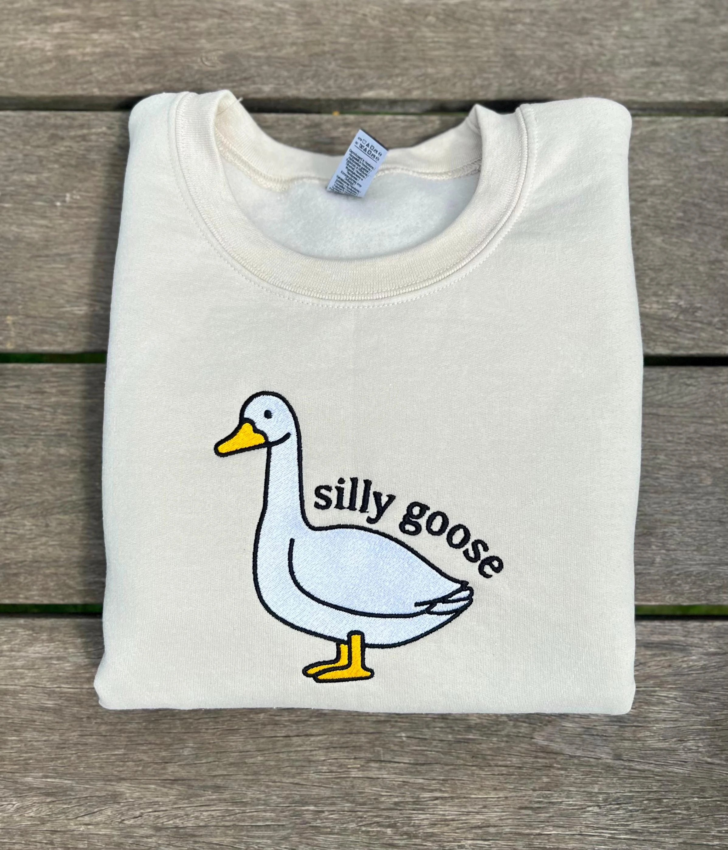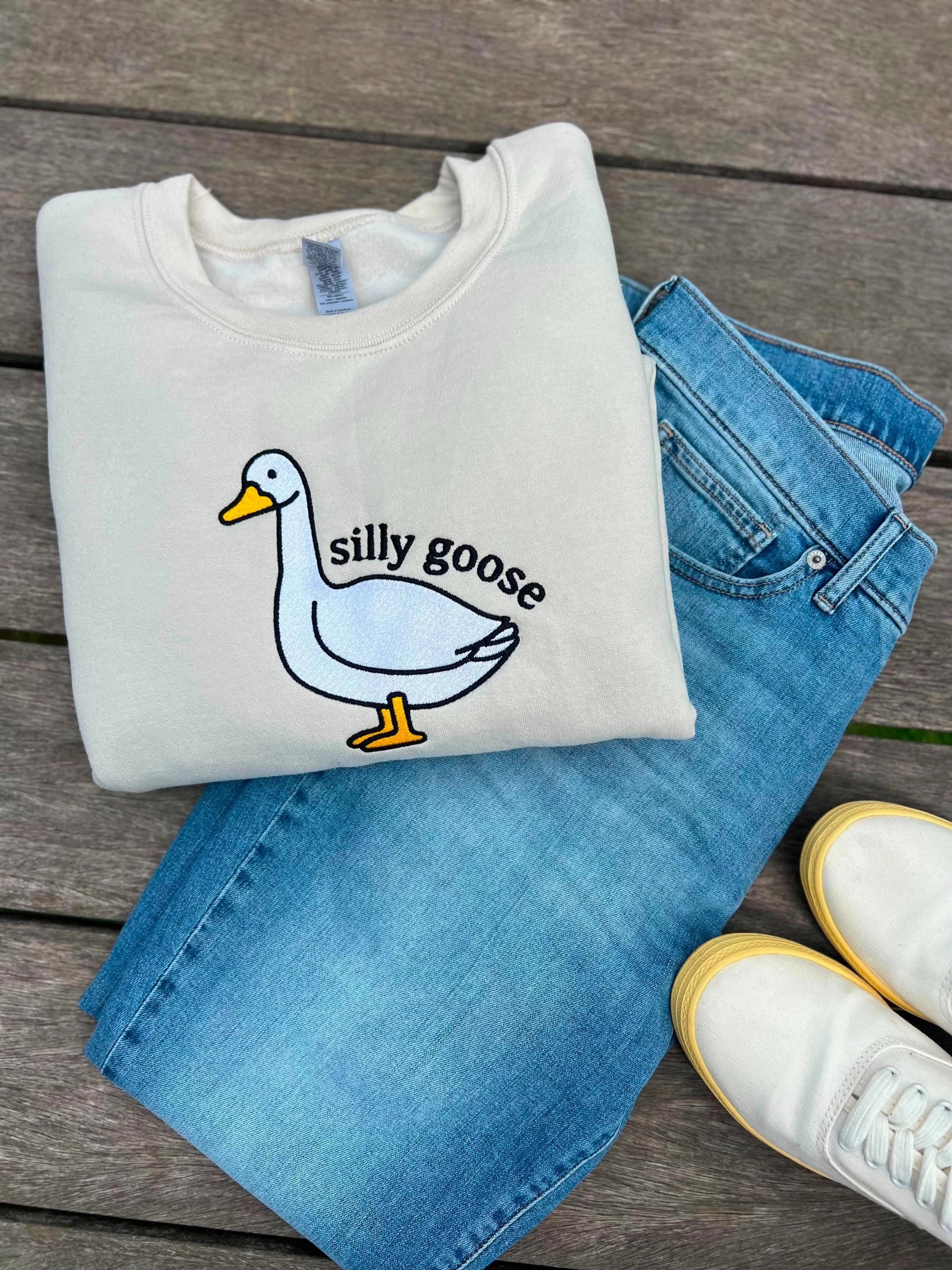 silly goose, silly goose sweatshirt, funny sweatshirt, fall crewneck, womens sweatshirt,mens crewneck, embroidered sweater, womens sweater