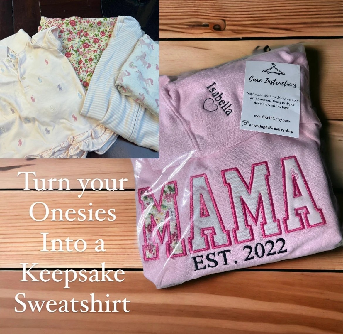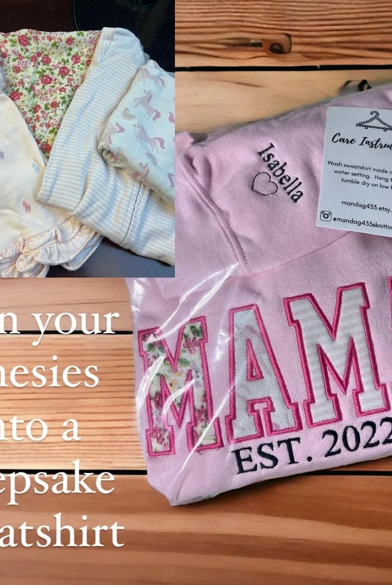 My embroidered onesie sweatshirts, are thoughtfully and carefully stitched with your little one's baby onesies. Some memories are too precious to pack away. Your babies onesies will be transformed into a beautiful, wearable keepsake you can cherish forever. They are timeless pieces you'll reach for again and again.