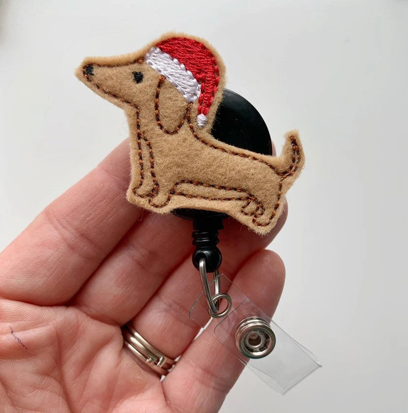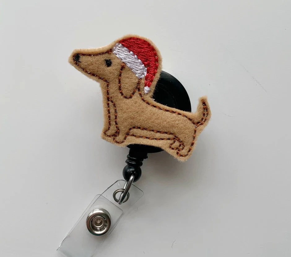 Dachshund with Santa Hat Badge Reel – Festive Pup Fun for Your Workday!