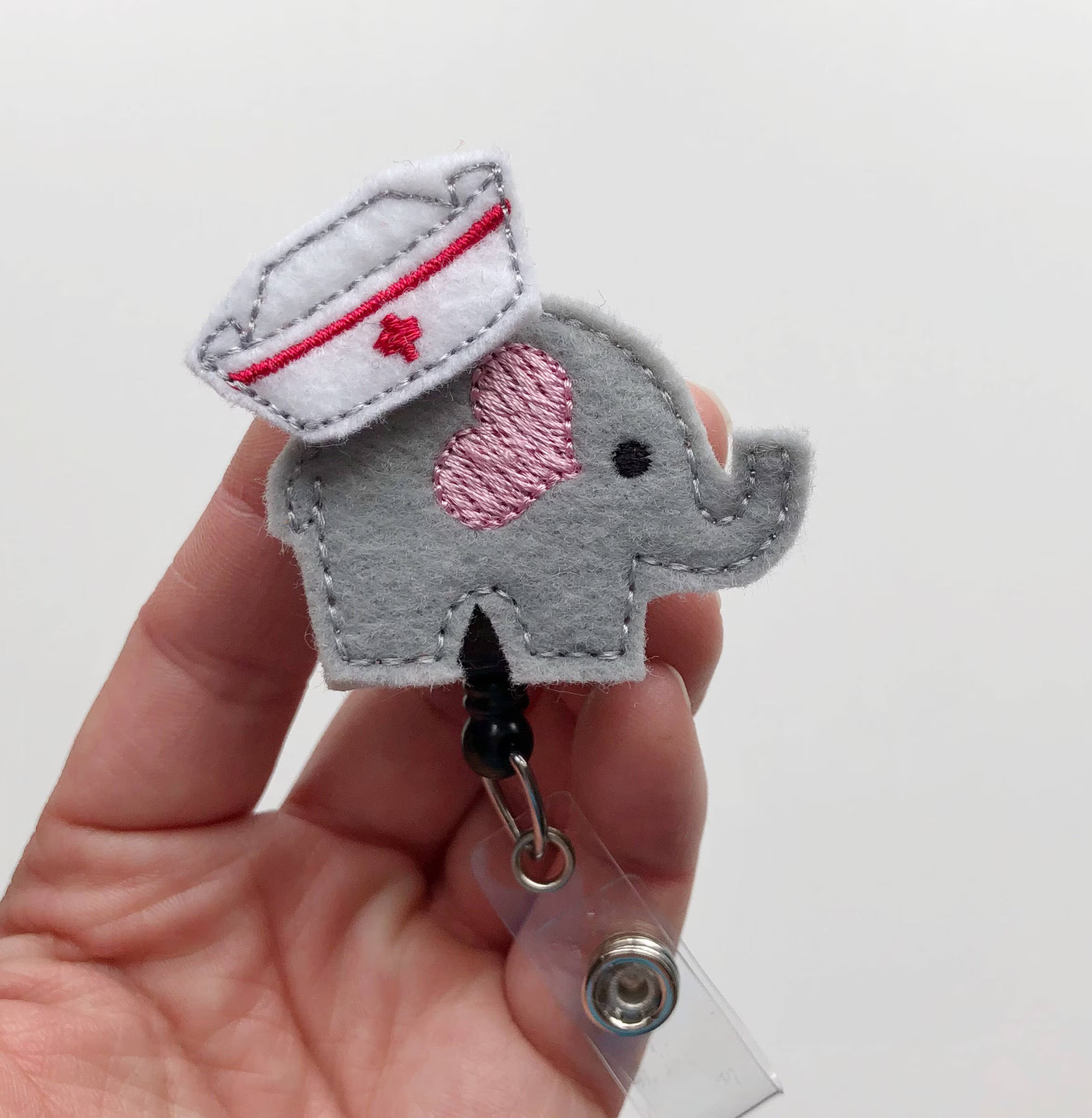 Elephant is machine embroidered by me and then securely attached to your clip. Can be made with or without the cute nurses cap. Simply choose your option at checkout.