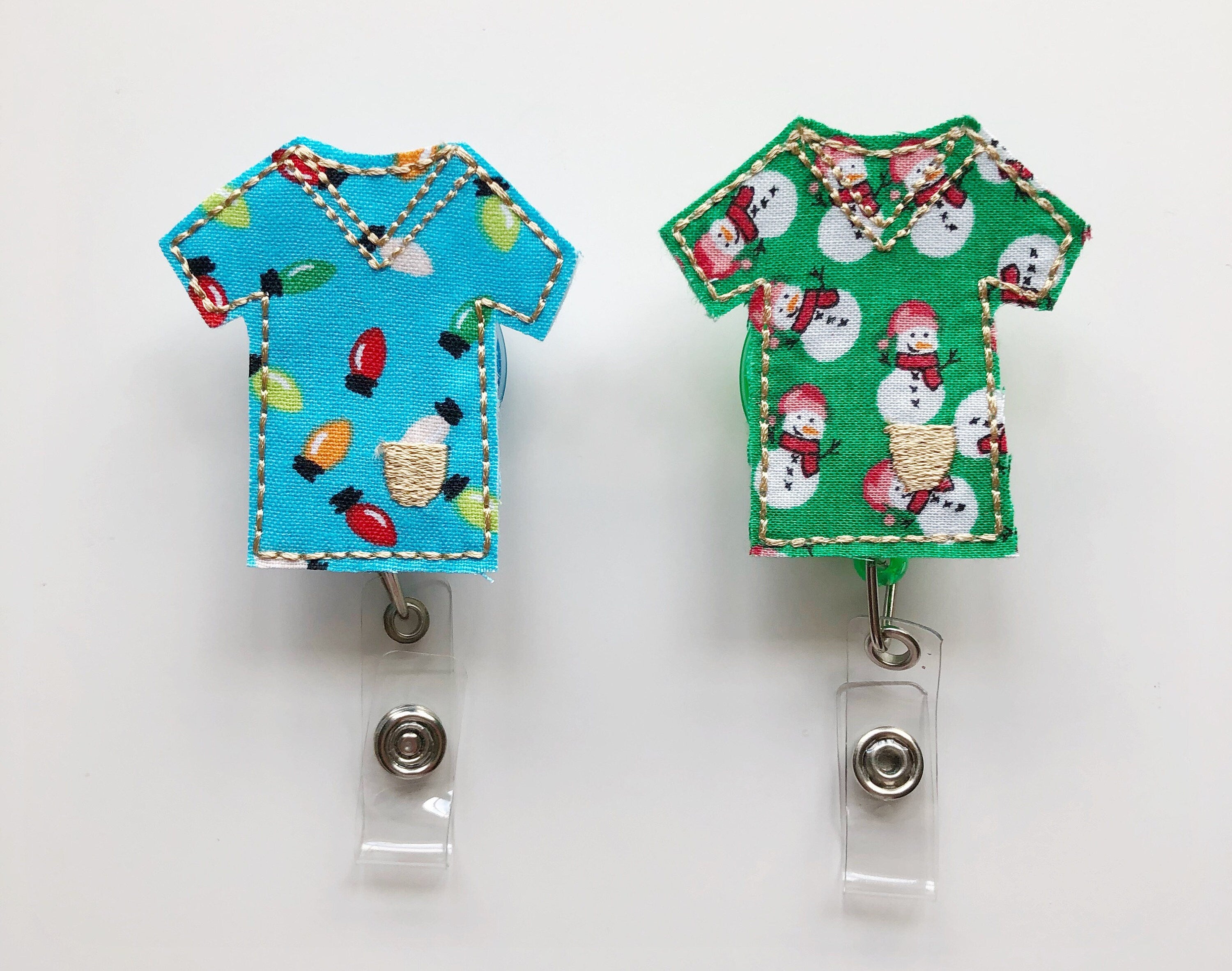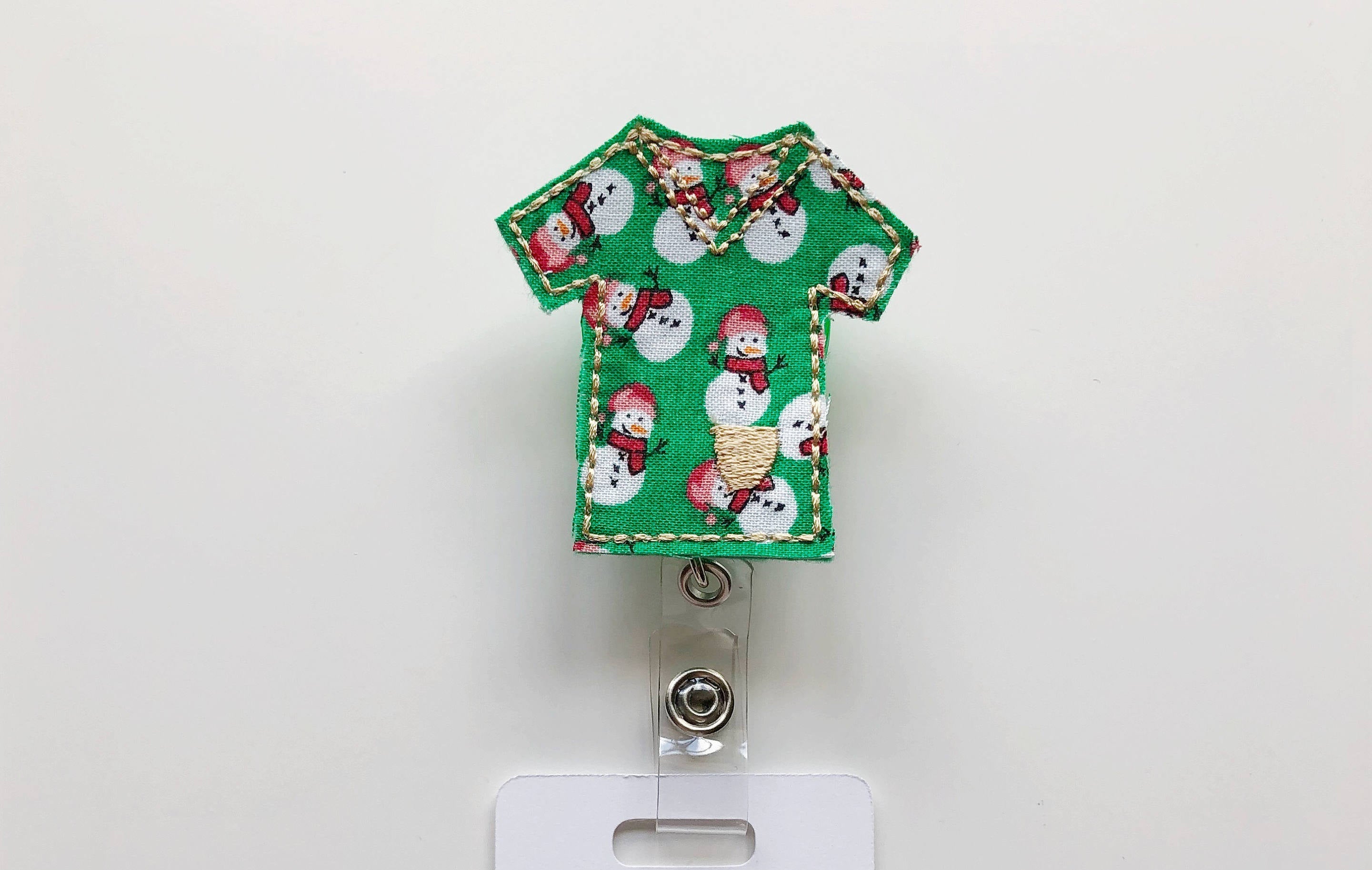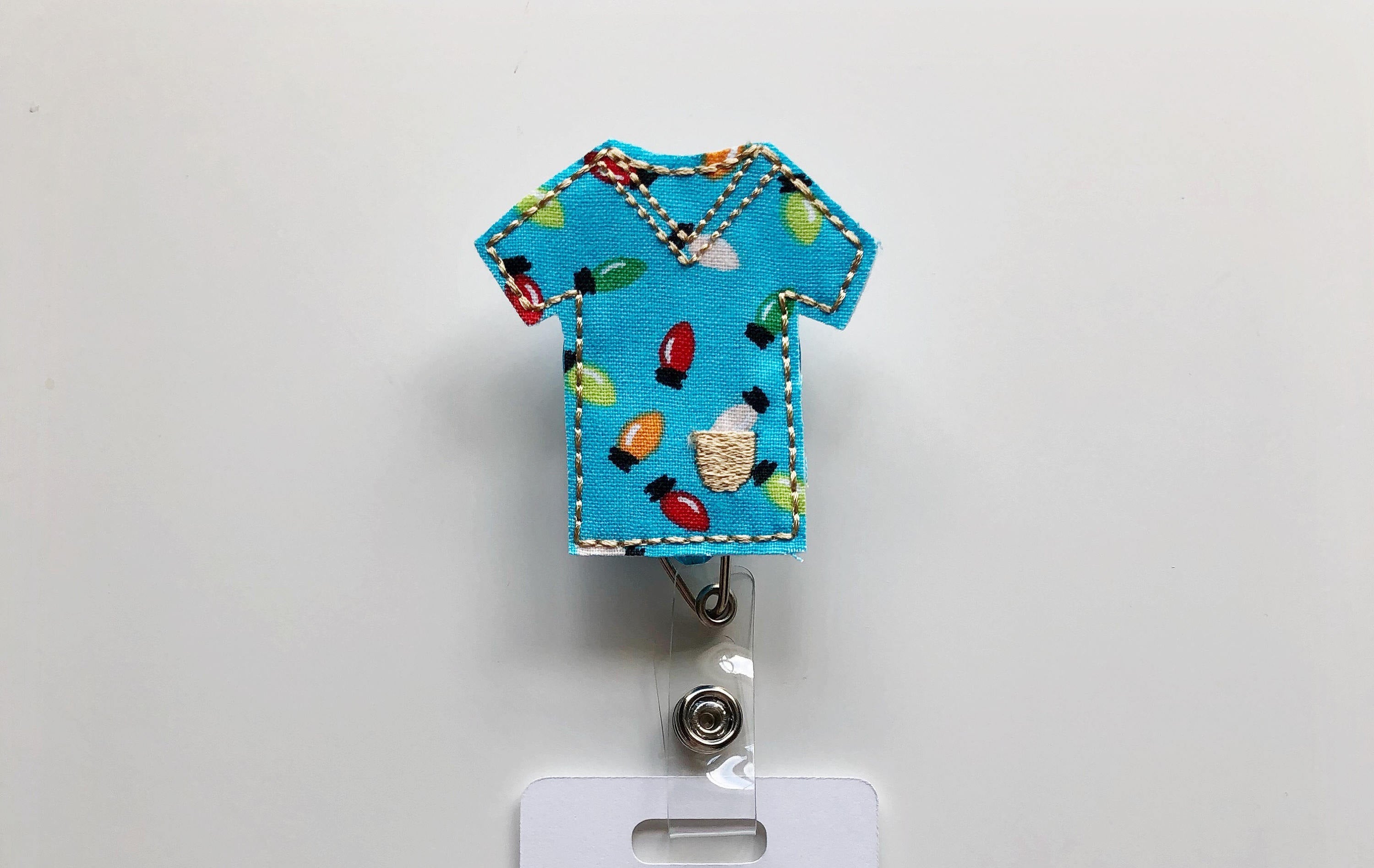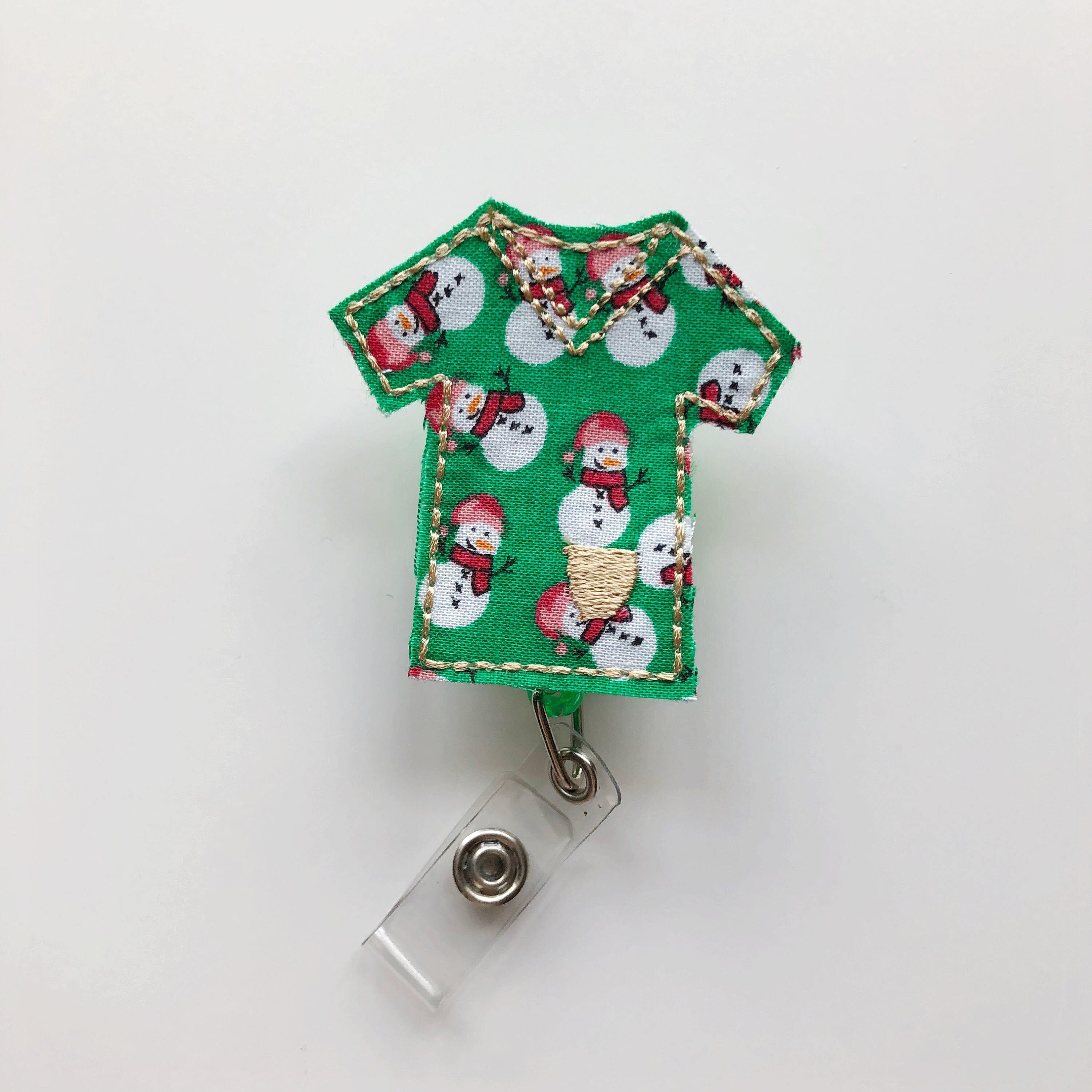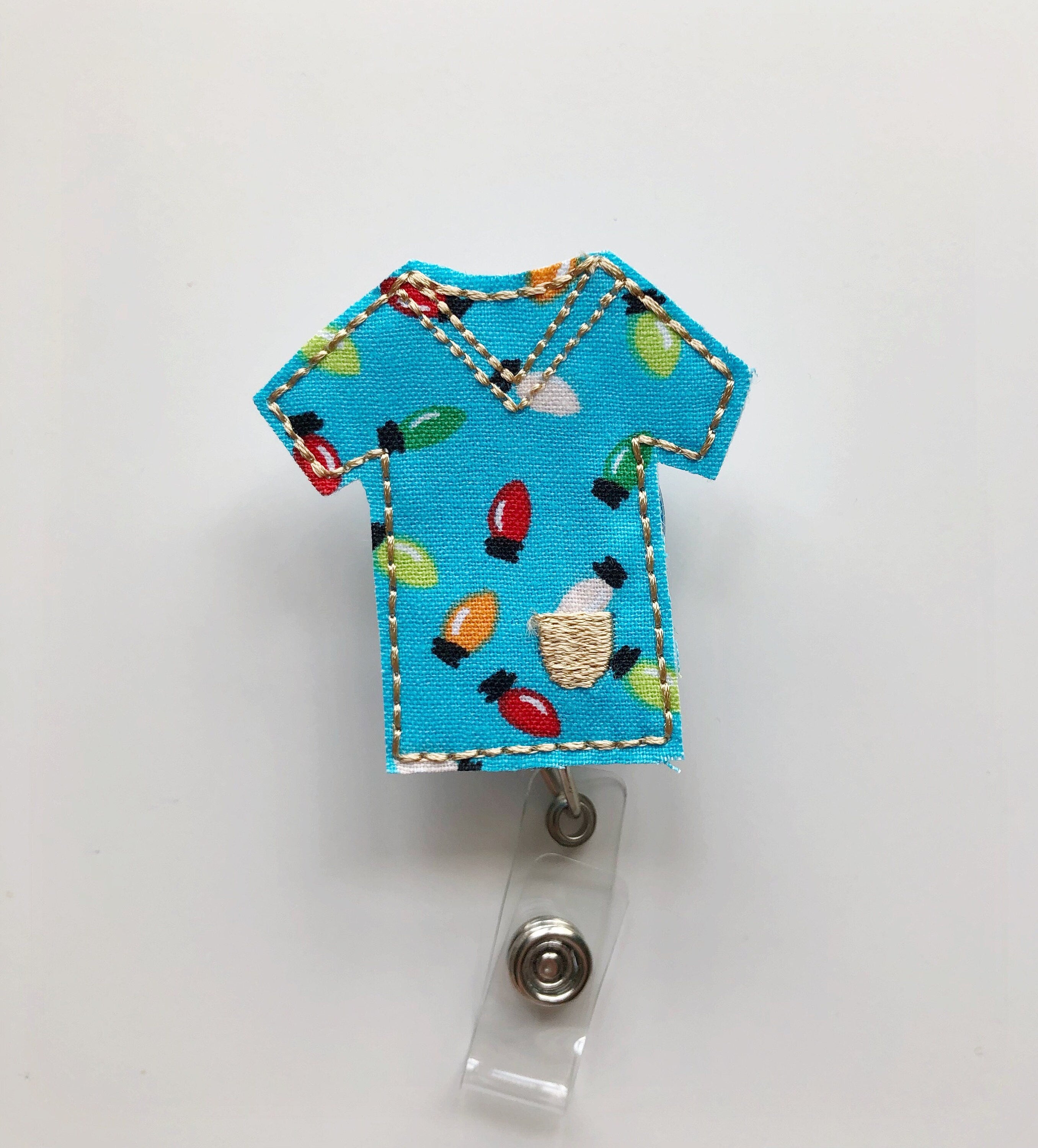 Festive Christmas Scrub Top Badge Reel – Holiday Cheer for Healthcare