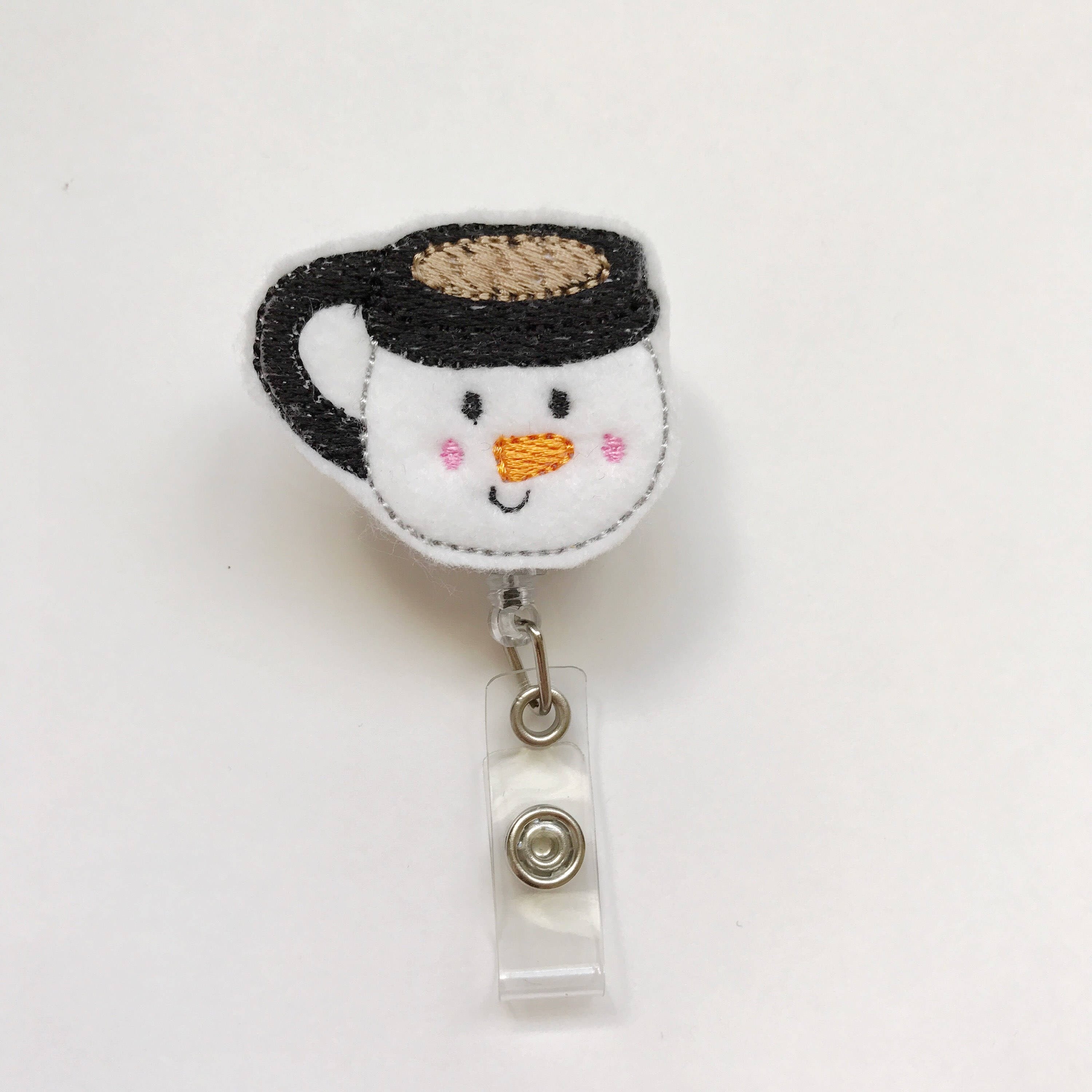 Featuring a charming hot cocoa mug design, this badge reel is a festive and functional accessory that keeps your ID or badge easily accessible while adding a cozy touch to your outfit.
