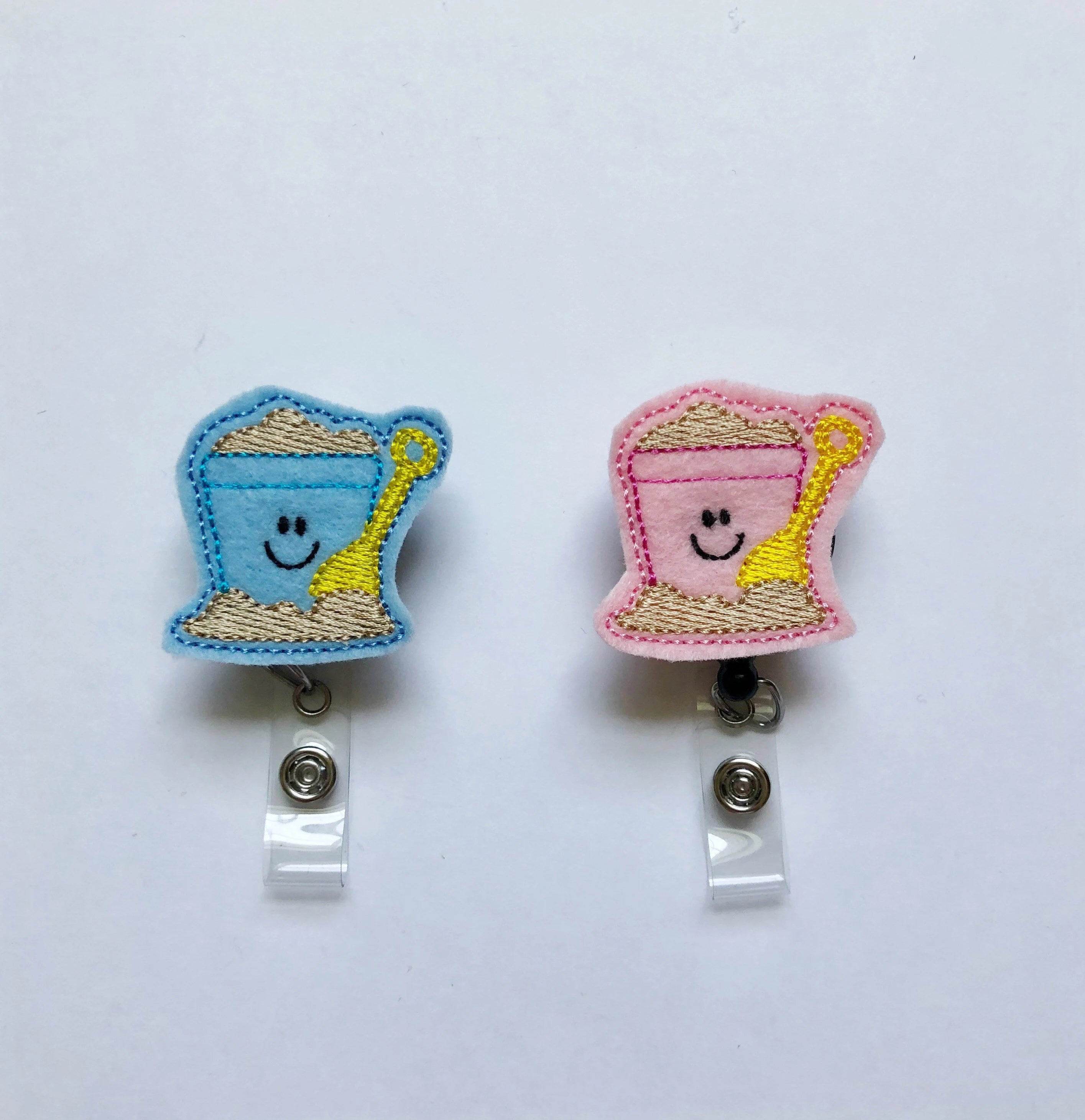 This Sand Bucket Badge Reel features a cute bucket filled with sand, complete with a shovel, making it a perfect accessory for those who love the beach. Whether you're in healthcare, education, or just need a reminder of those sunny beach days, this badge reel adds a fun, beachy touch to your outfit while keeping your ID handy.