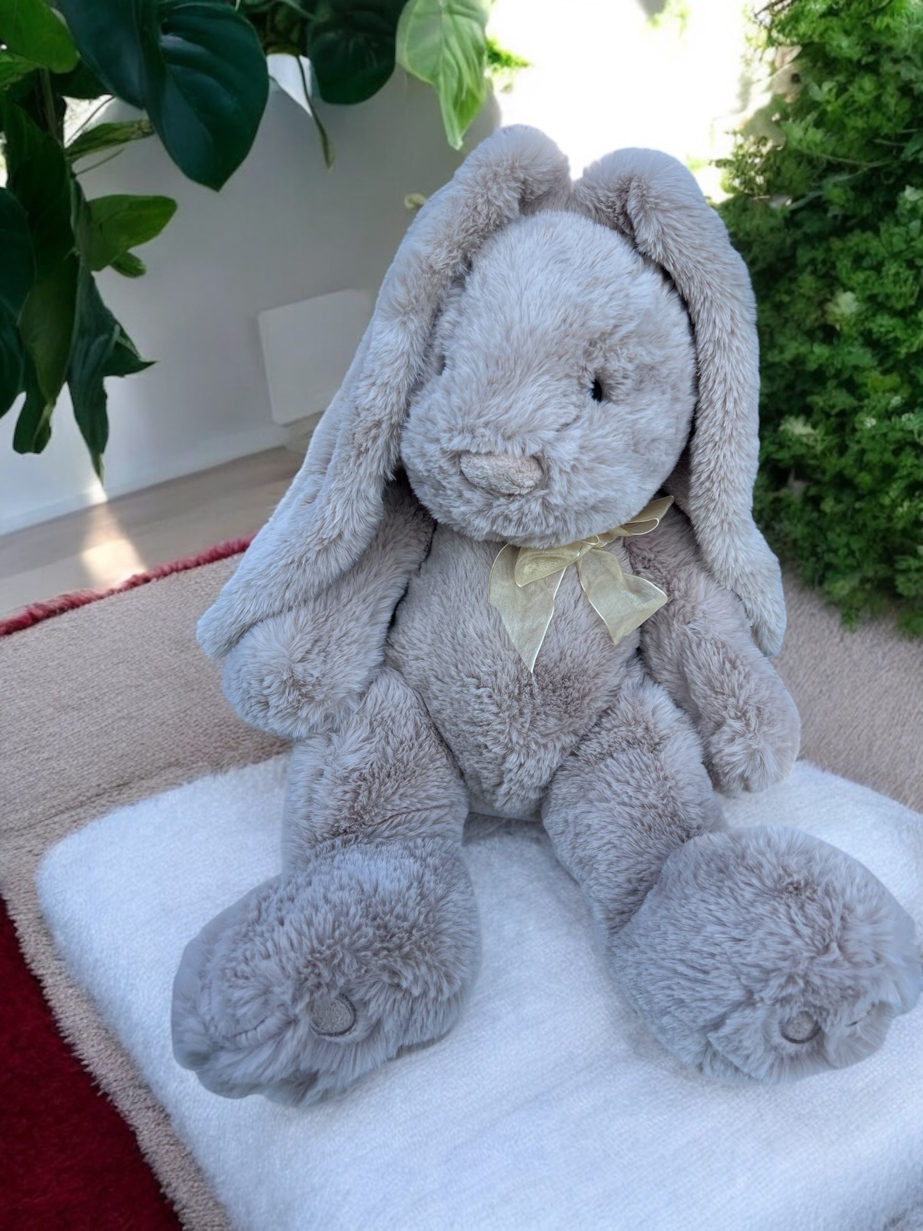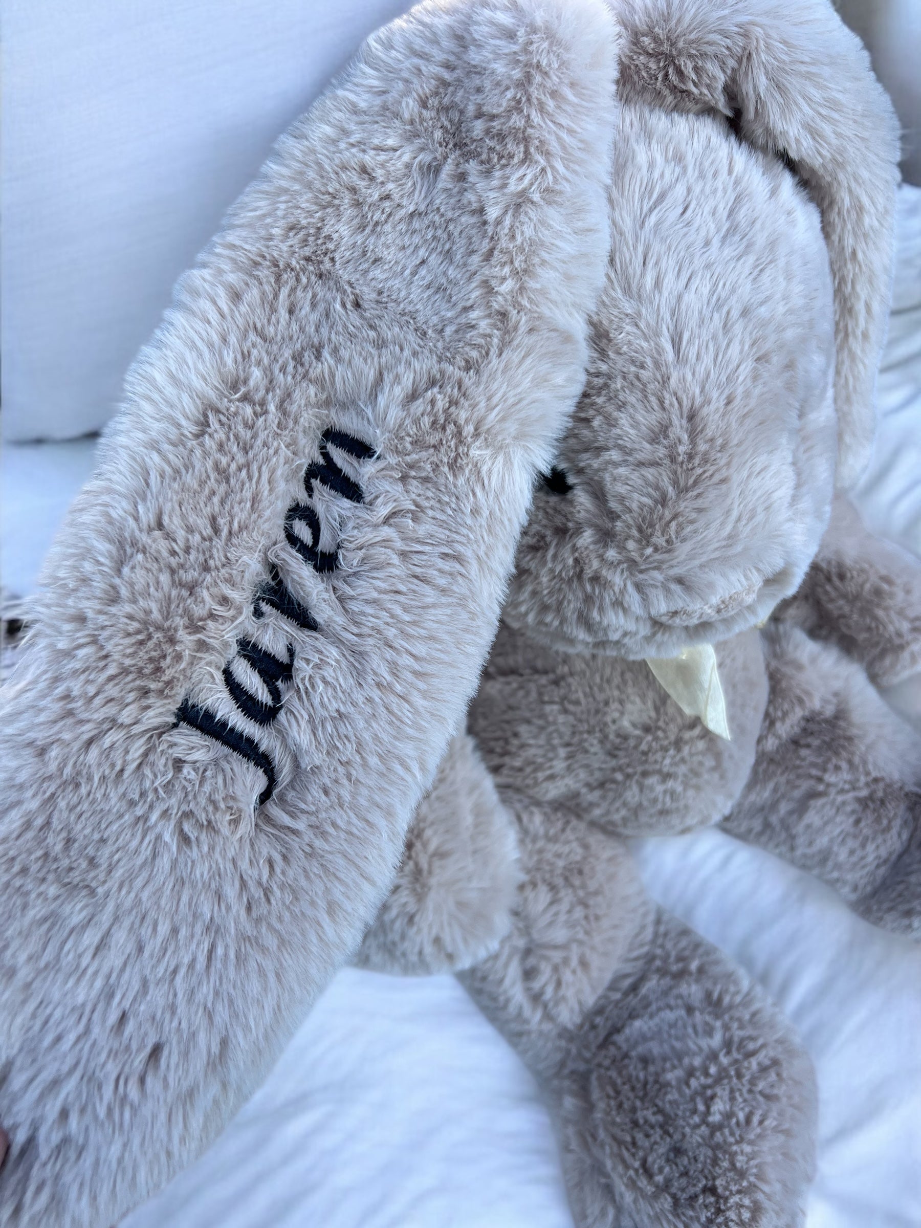 Name embroidered onto the ear of a super soft bunny. Chose between large or small bunny at checkout, in either ivory or brown color.