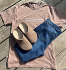 This super-soft embroidered tee says everything without saying anything. Clean, neutral stitching keeps it classy, while the message keeps it real.