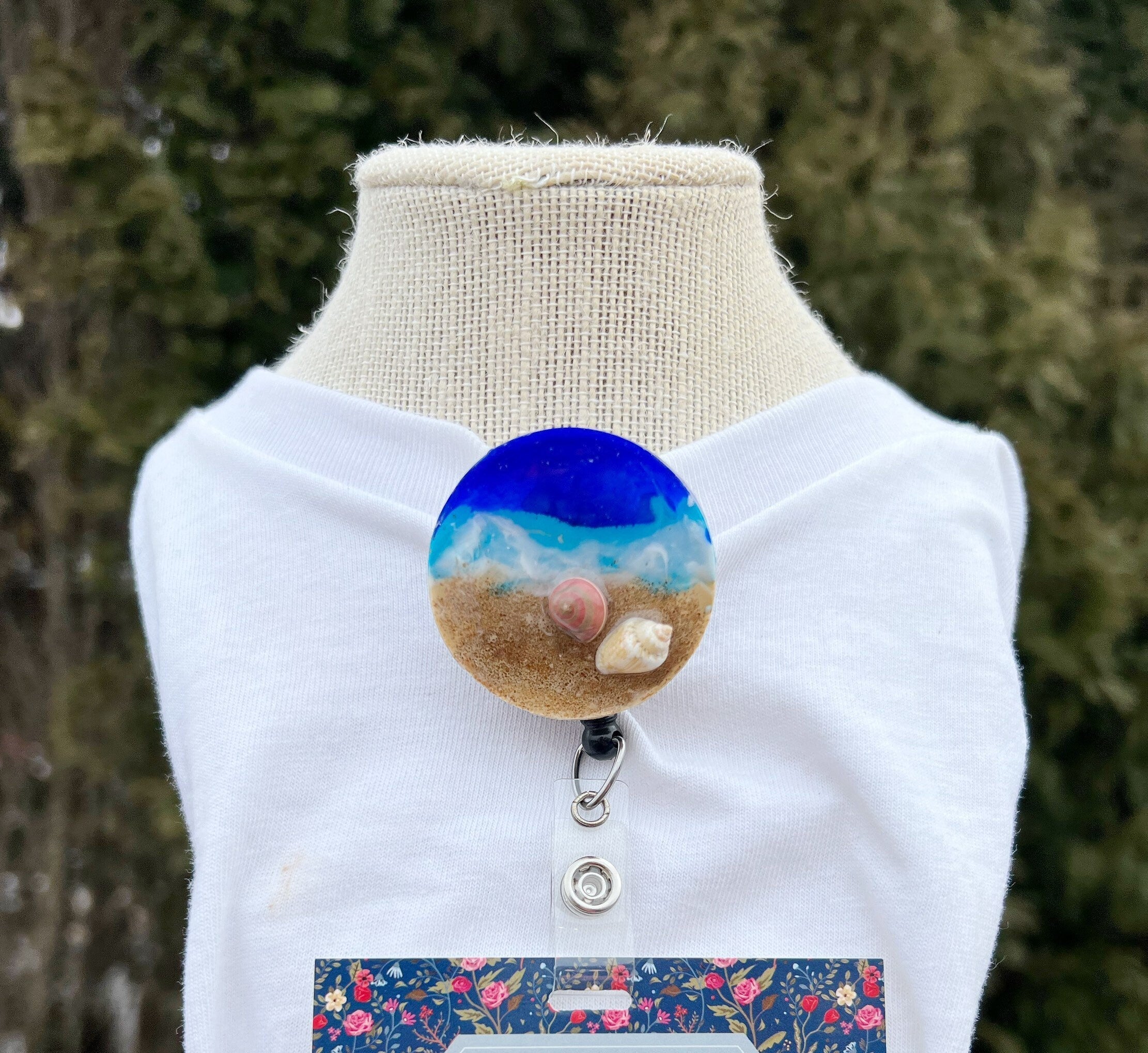 Beach Resin Badge Holder – Carry the Calm of the Coast with You