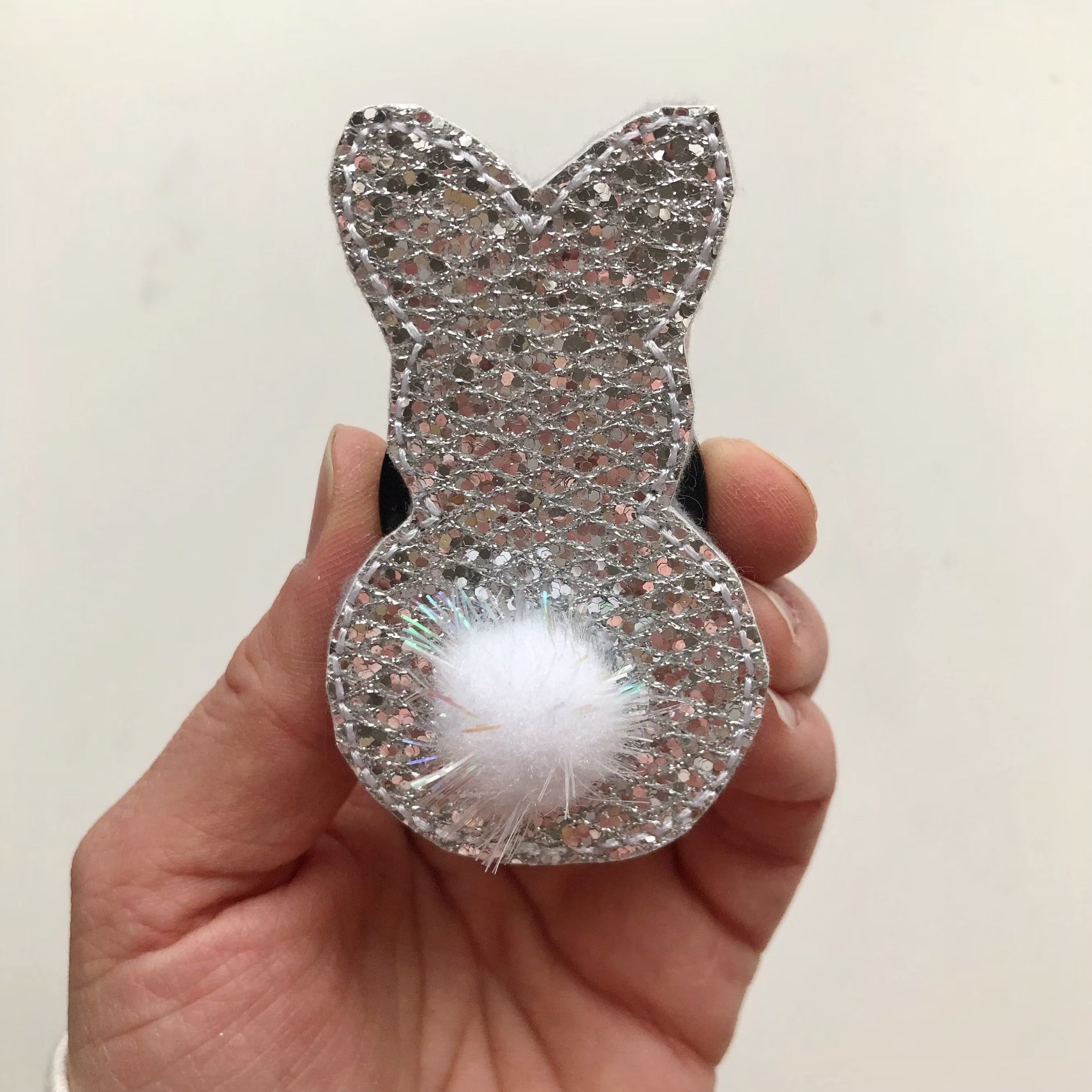 Adorable bunny is machine embroidered by me and then securely attached to your clip. The silver, rose gold and blue bunnies Made with a beautiful glittery fabric so this bunny really sparkles. The other two bunnies are made with a cute polka dot fabric or pretty floral one.