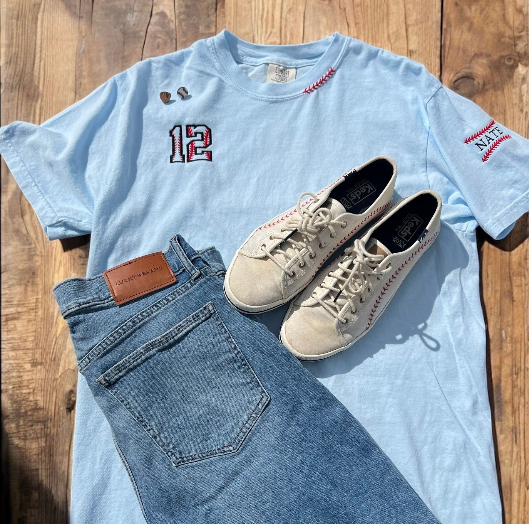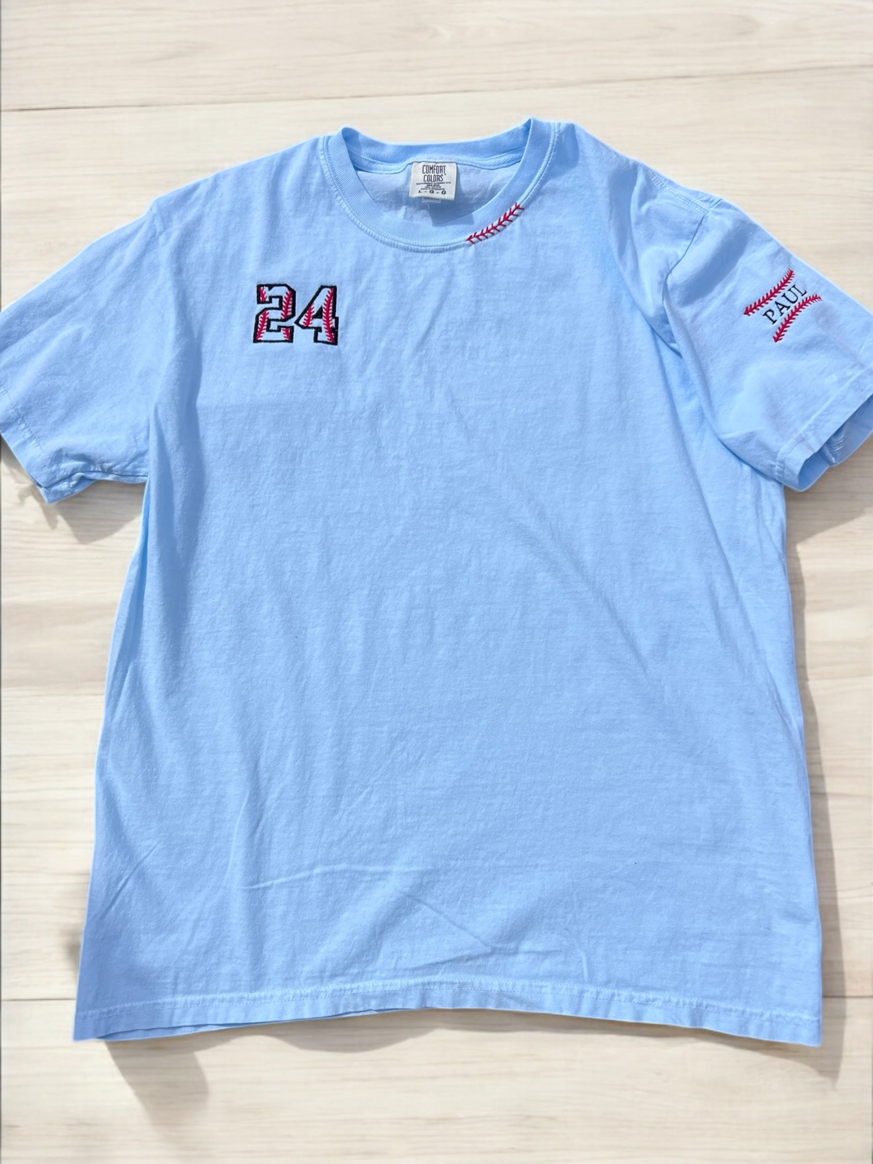 Show off your team spirit and style with my custom embroidered baseball t-shirts. Whether you're hitting the field or cheering from the stands, these t-shirts are designed for comfort, durability, and a personal touch.
