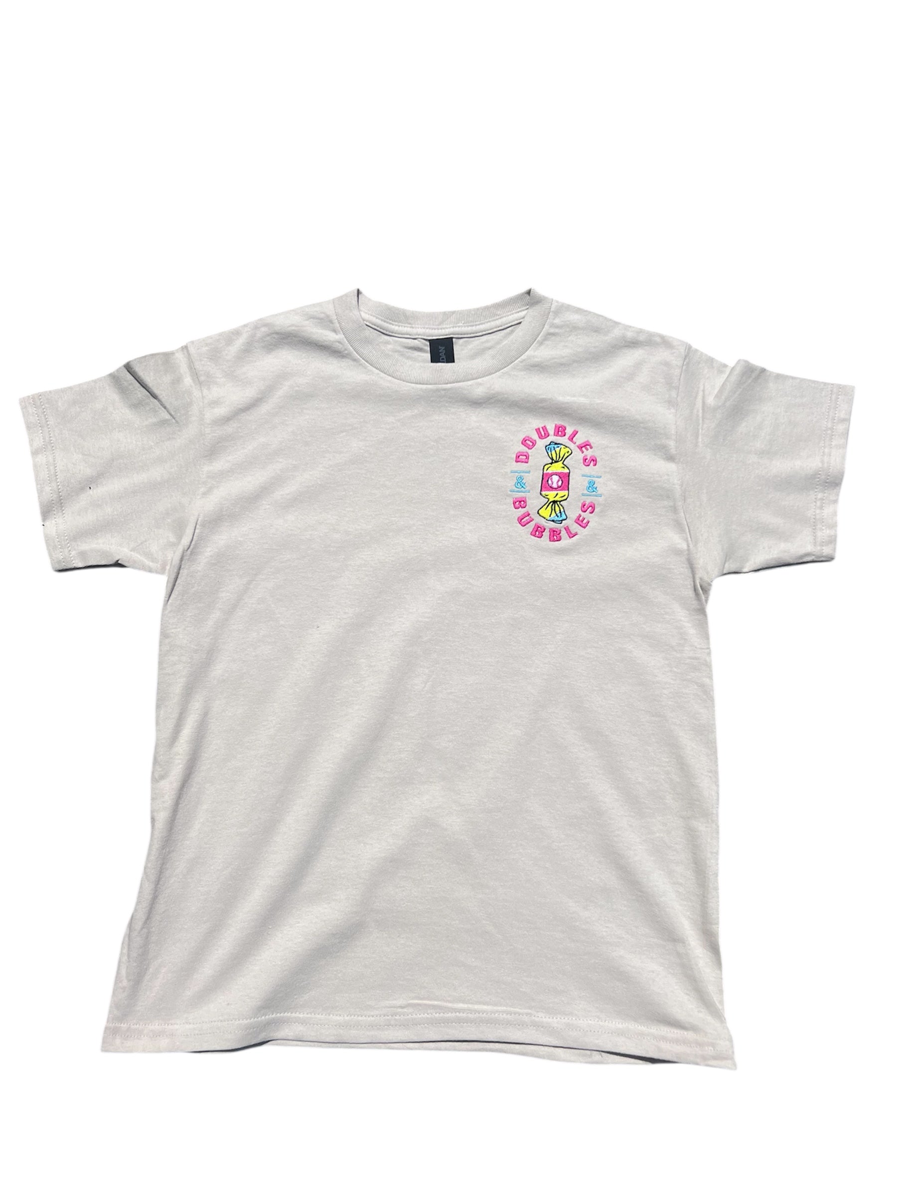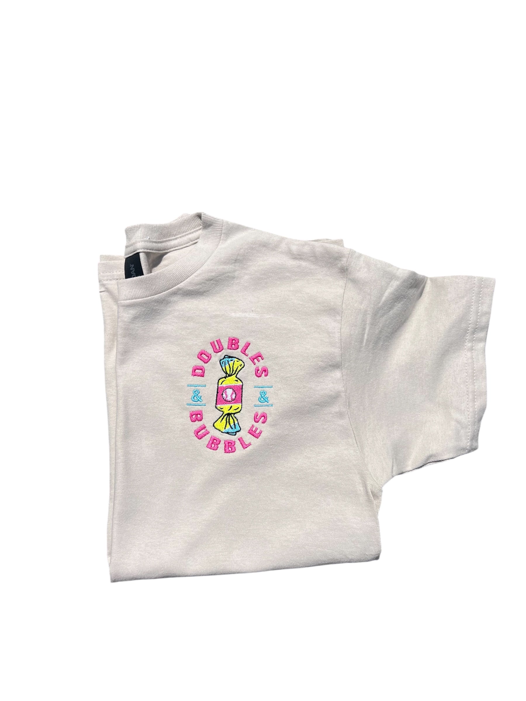 Because it’s all about the vibe: Bubbles and Doubles. Whether it’s chewing bubblegum in the dugout, turning two on the field, or living in the moment—this shirt says it all.