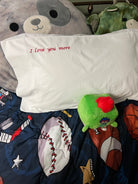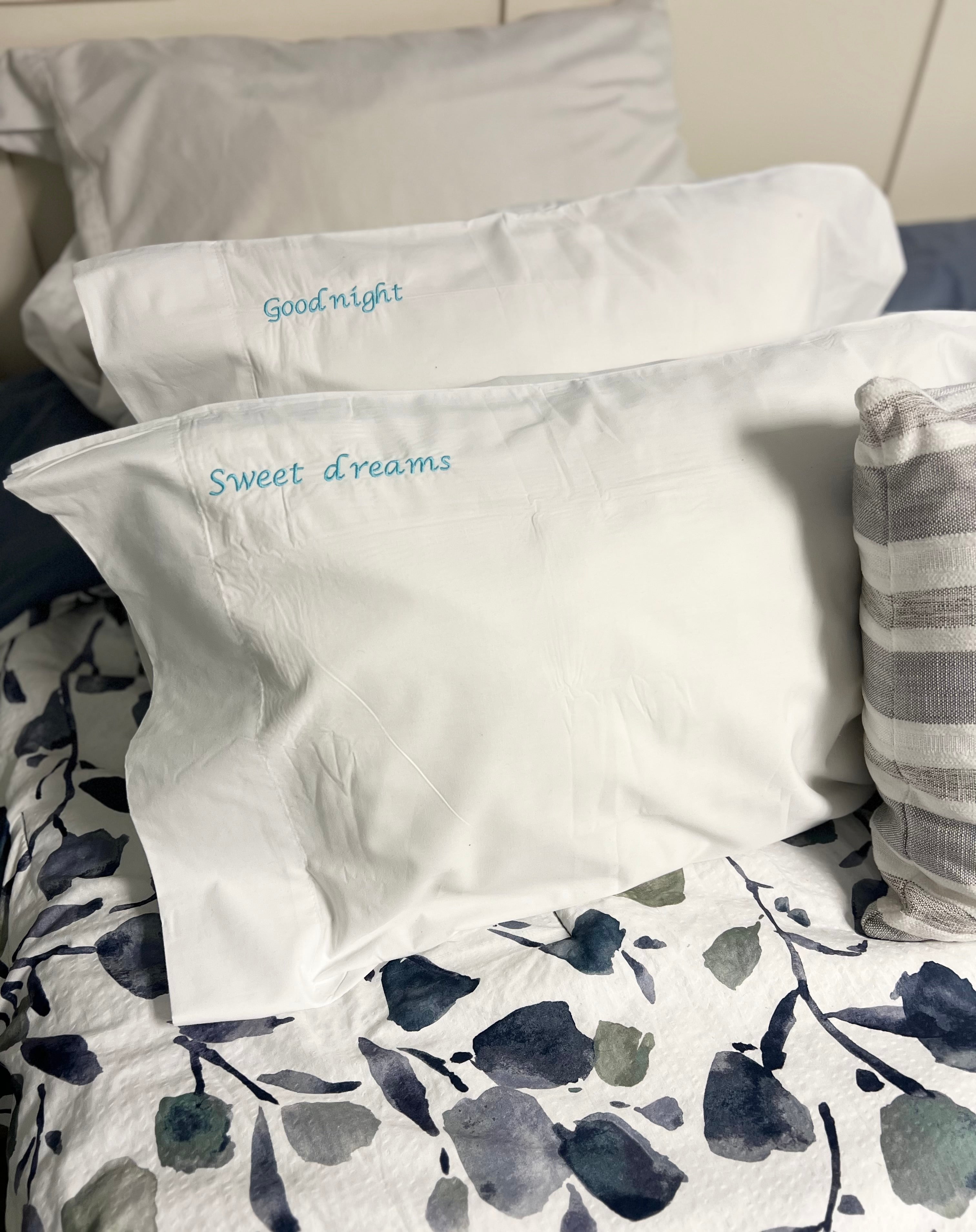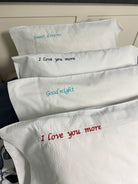 My embroidered pillowcases are designed to turn an everyday essential into something meaningful. Featuring sweet phrases like “I love you more,” “Goodnight,” or “Sweet Dreams,” these pillowcases make the perfect gift for children, couples, anniversaries, weddings, or just because.