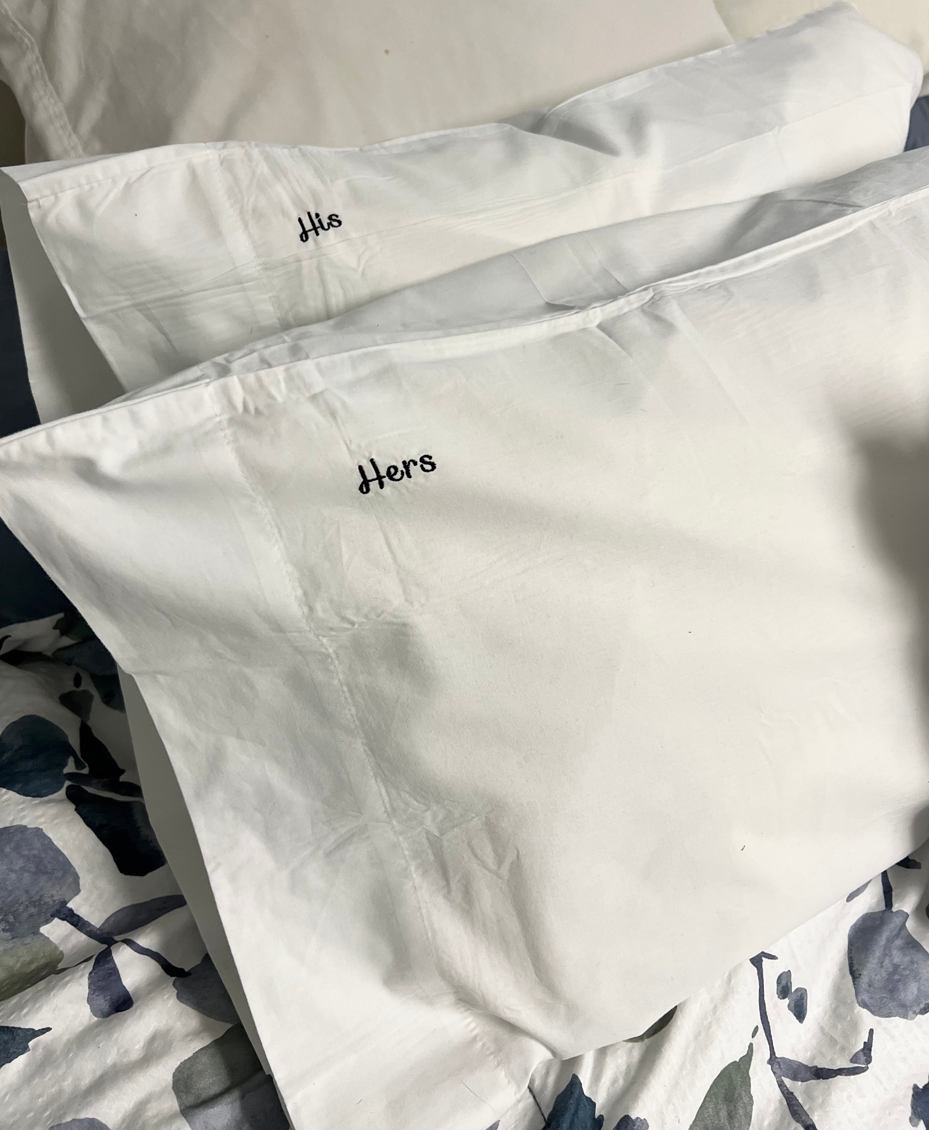 Embroidered Bed Pillowcase – Romantic Sayings or Personalized Initials