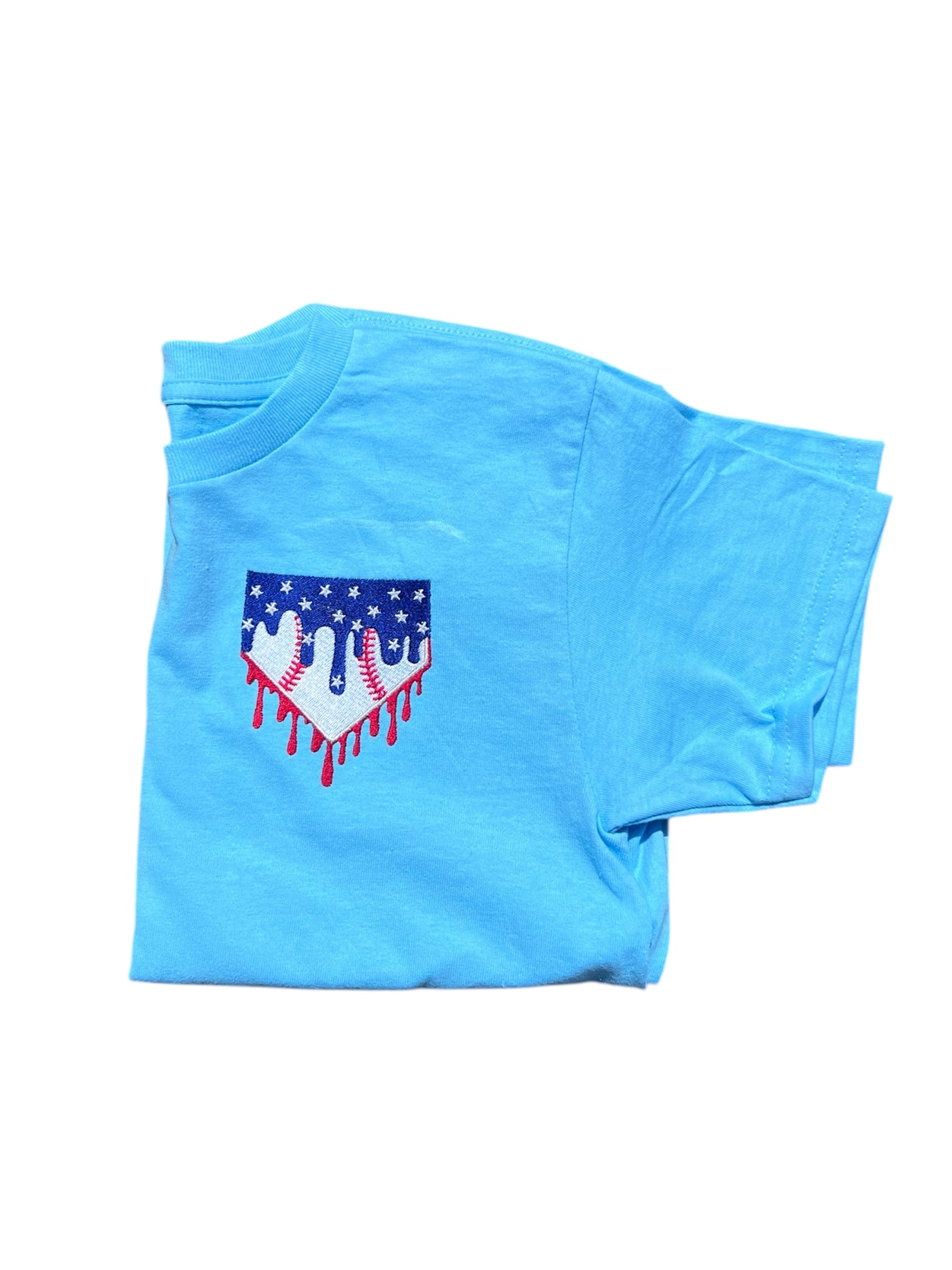 Home Plate Drip Baseball- Patriotic- Youth Short Sleeve Shirt