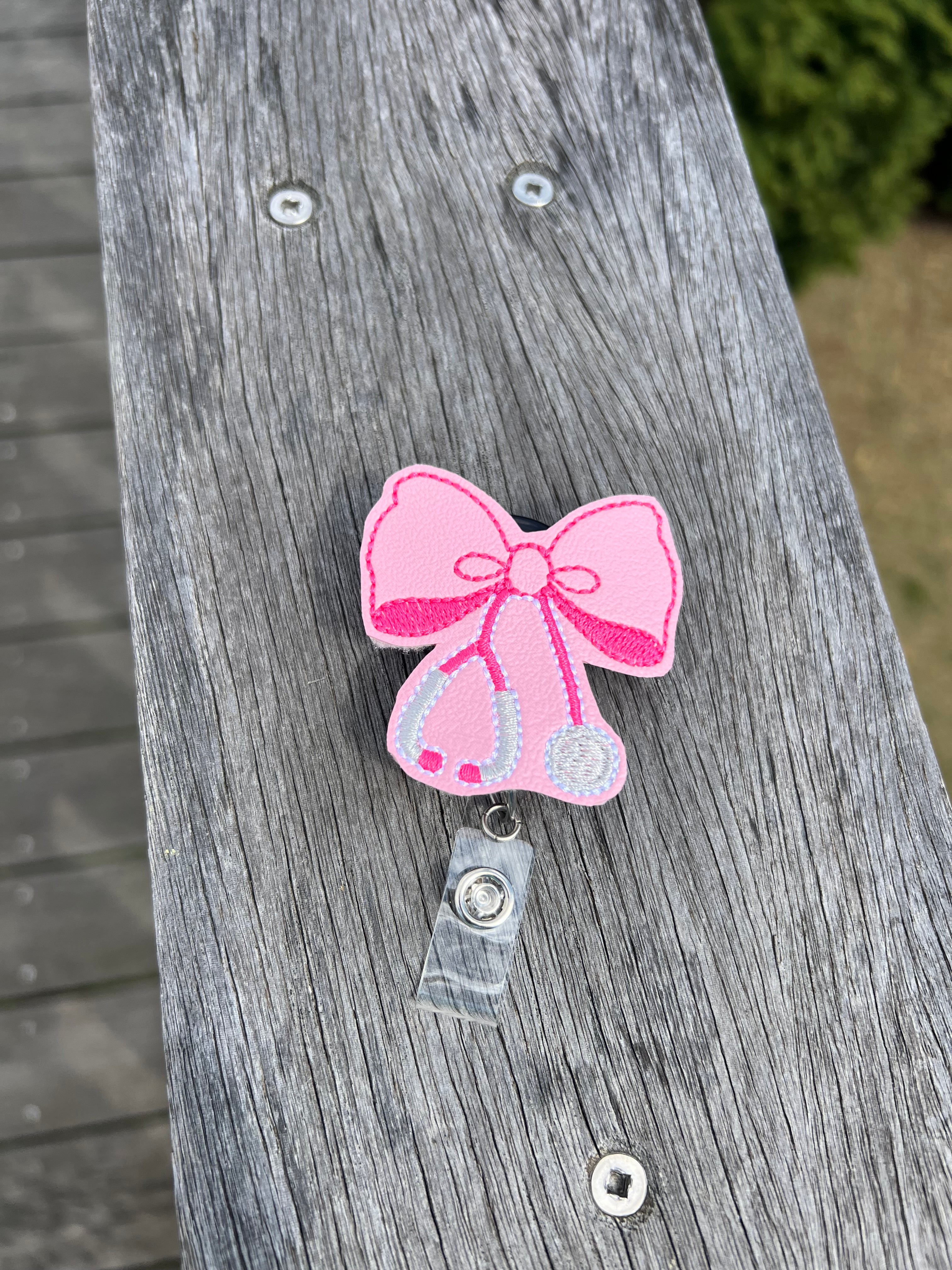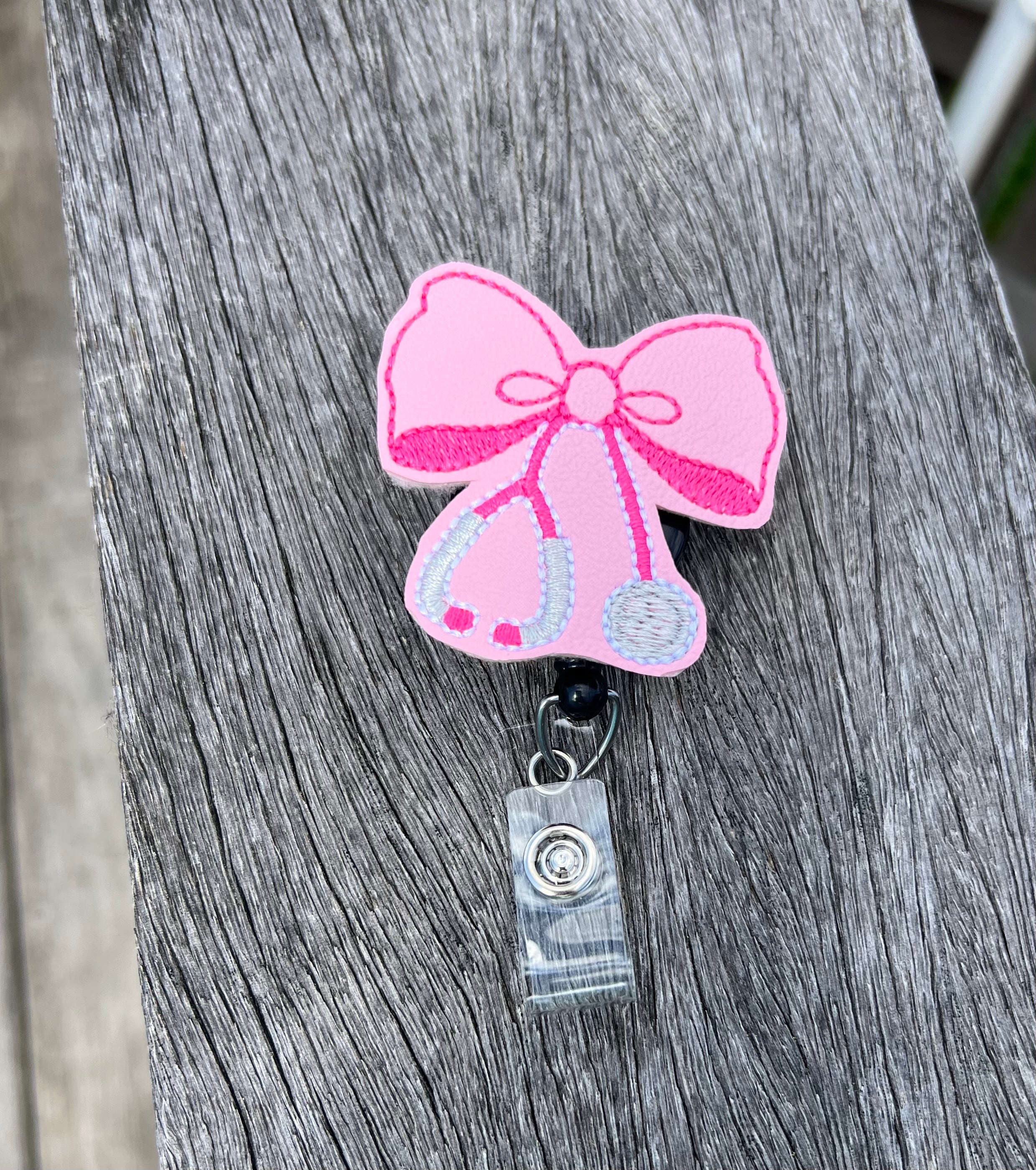This cute stethoscope bow badge reel is the perfect way to add some flair to your ID badge.
